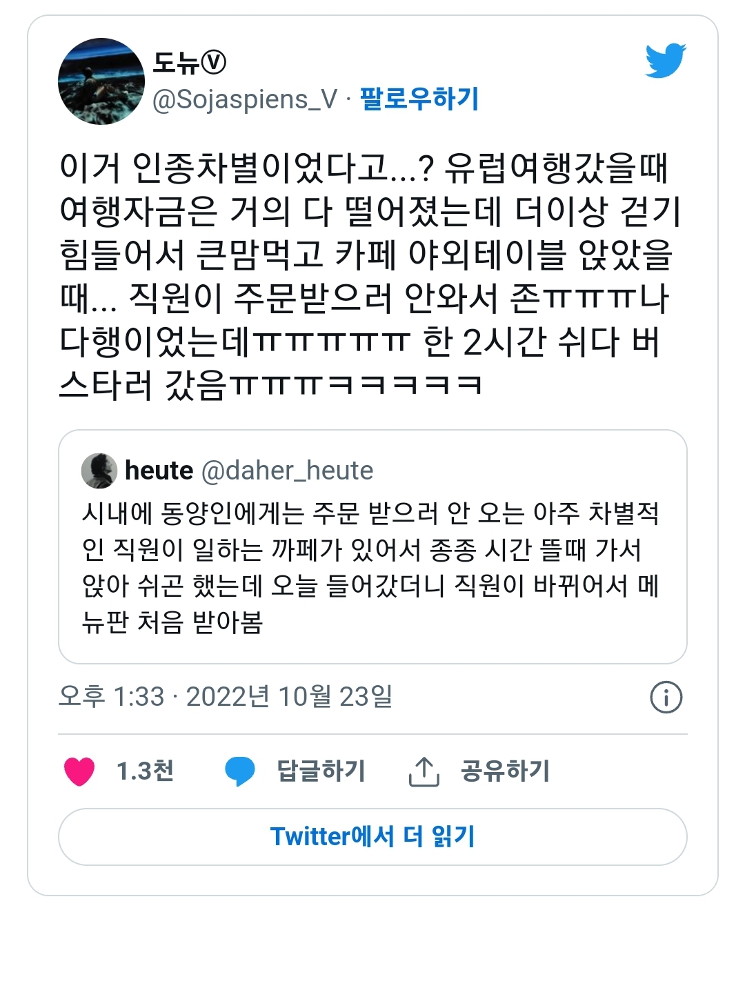 À¯·´¾ÖµéÀÌ ÀÎÁ¾Â÷º°ÇÏ´Â ±× ½É¸®¿Í ´À³¦ÀÌ ´çÃÖ ¹«¾ùÀÎÁö ±Ã±ÝÇÏ´Ù. ¿ì¸®´Â ÁÖº¯¿¡¼ ÈæÀÎ, Áßµ¿À̳ª µ¿³²¾Æ »ç¶÷À» º¸´õ¶óµµ ´Ù¸£´Ü°É ÀÎÁöÇÒ ¸ÁÁ¤ ÀϹÝÀûÀ¸·Î´Â Àû¾îµµ »ç¶÷Ãë±ÞÀº Çϴµ¥ À÷µéÀº ¾Æ¿¹ Á¸ÀçÀÚü¸¦ ¹«½ÃÇѴٴ°ÅÀݾÆ. ±×·¸°Ô ÇÒ ¶§ÀÇ °ÂµéÀÇ ½É¸®»óŰ¡ Á¤¸»·Î ±Ã±ÝÇÔ. ±×¸®°í ±×·± »óȲ¿¡¼ Á×ÅÊÀÌ ÈÄ·Á°¥±â´õ¶óµµ ¶È°°Àº ¹ÝÀÀÀÏÁöµµ ±Ã±ÝÇÏ´Ù. [6]