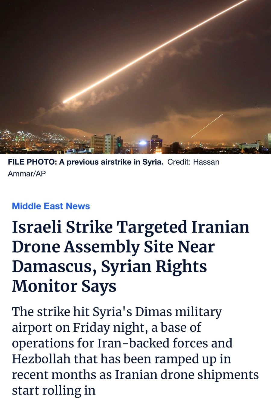 À̽º¶ó¿¤ÀÌ ½Ã¸®¾Æ ´Ù¸¶½ºÄí½º ±Ù±³¿¡ ÀÖ´ø À̶õÀÇ µå·Ð °øÀåÀ» °ø½ÀÇß´Ù°íÇÔ£¨À̶õÀÌ ·¯½Ã¾Æ¿¡ µå·Ð Áö¿øÁߣ©