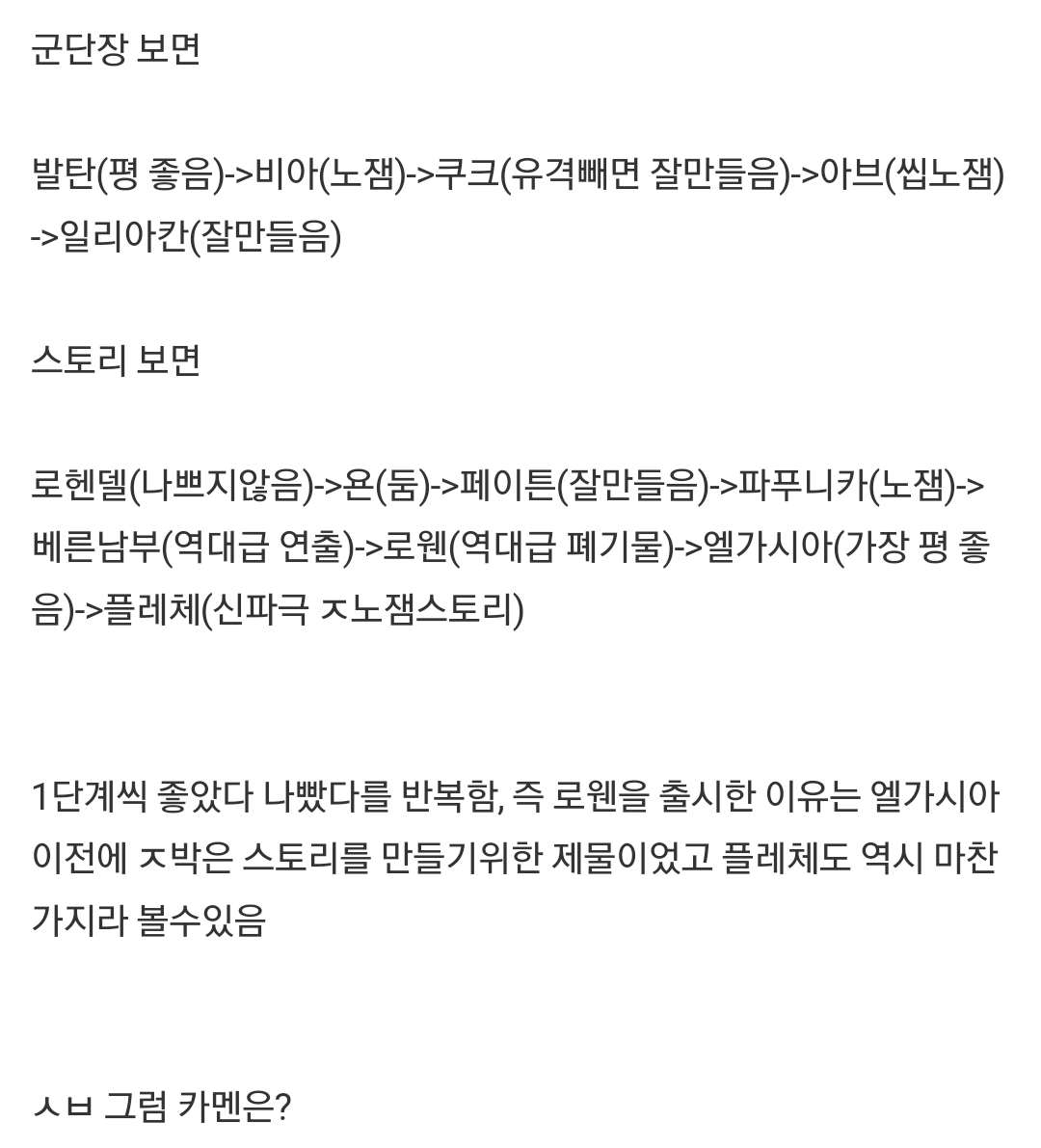 ±×·¡¼ ¿Í¿ìµµ ¿äÁò Ä£±¸µéÇÑÅ٠ƲµüÃë±Þ¹ÞÀÝÀ½.. ·Î¾Æ À¯°Ý´ë À̾߱â´Â ³ª¿Ã¼ö¹Û¿¡ ¾ø´Â°Ô º¸½º ³À̵µÀÚüµµ À߸ø¸¸µé¾ú´Âµ¥ ÆÐÅϵµ 34ºÎÅÍ À¯°Ý³¿½Ã Á¸³ª³ª°í 56°üÀº ¼÷·ÃÀÚµµ ½ºÆ®·¹½º¹Þ°ÔÇÏ´Â ¤¤ÀëÆÐÅÏ º¹ÇÕü.. ±×·¯´Ï ´Ùµé Á¸³ª½¬¿î 12°ü¸¸ °¡¹ö¸®°í 3456Àº °íÁ¤ÆÌ¾Æ´Ô ±ÍÂú¾Æ¼ ¾È°¡¹ö¸®°í.. Àϸ®¾ÆÄÀº ±×·¡µµ ¸î¸í ¶Ë½Îµµ ij¸®°¡°¡´ÉÇÏ´Ï À¯ÀëÀÌÁö¸¸ ÇϺ갰Àº ¼³°è±¸Á¶ ·¹ÀÌµå ¶Ç³ª¿À¸é ±×¶© ÇǰïÇØ¼ °× ½Òµí