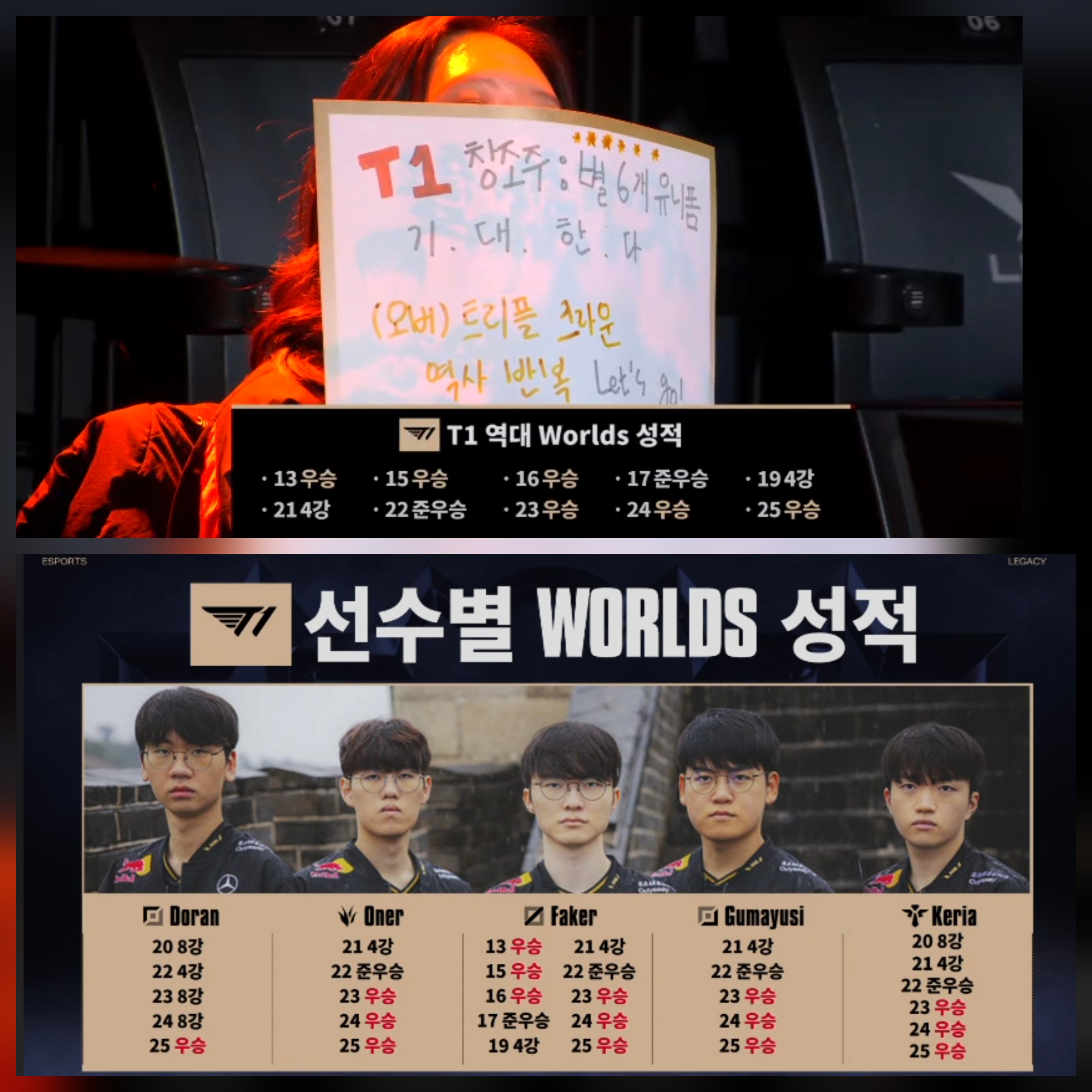 T1°ú ¼±¼öµéÀÇ ±â·Ï. ¿ùÁî ÁøÃ⸸ Çϸé ÃÖ¼Ò 4° ¤§¤§