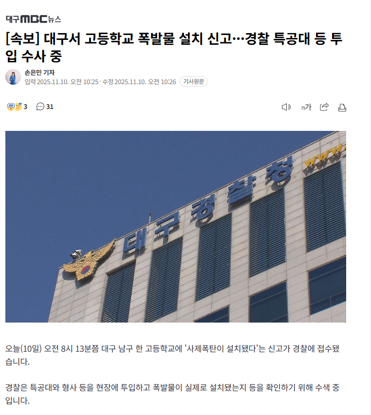 Á¦¸ñ ´ë±¸¼­ °íµîÇб³ Æø¹ß¹° ¼³Ä¡ ½Å°í¡¤¡¤¡¤°æÂû Ư°ø´ë µî ÅõÀÔ ¼ö»ç Áß [4]