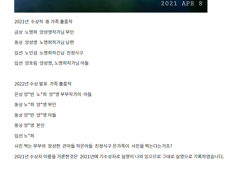¿¹Àü¿¡ °ø¸ðÀüÇϰí Ä÷¸®Æ¼¿¡ ¸Â´Â ÀÛǰÀÌ ¾ø¾î ¼ö»óÀº ¾ÈÇÏÁö¸¸ Á¦ÃâÇÑ ÀÛǰÀº »ç¿ëÇϰڴٴ °ø¸ðÀüµµ ÀÖ¾úÀ½.