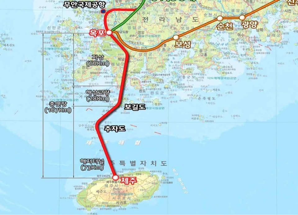 Çѱ¹±³Å뿬±¸¿øÀÌ 2008³â ±¸»óÇÑ ¡®Á¦ÁÖ~È£³² ÇØÀú°í¼Óöµµ °Ç¼³¾È¡¯¿¡ µû¸£¸é ÀÌ »ç¾÷Àº ¸ñÆ÷~ÇØ³²~º¸±æµµ~ÃßÀÚµµ~Á¦ÁÖµµ¿¡ À̸£´Â 167§°£¨Áö»ó 66§°¡¤ÇØ»ó ±³·® 28§°¡¤ÇØÀú 73§°£©¸¦ ¿¬°áÇÏ´Â ´ëÇü ÇÁ·ÎÁ§Æ®´Ù.