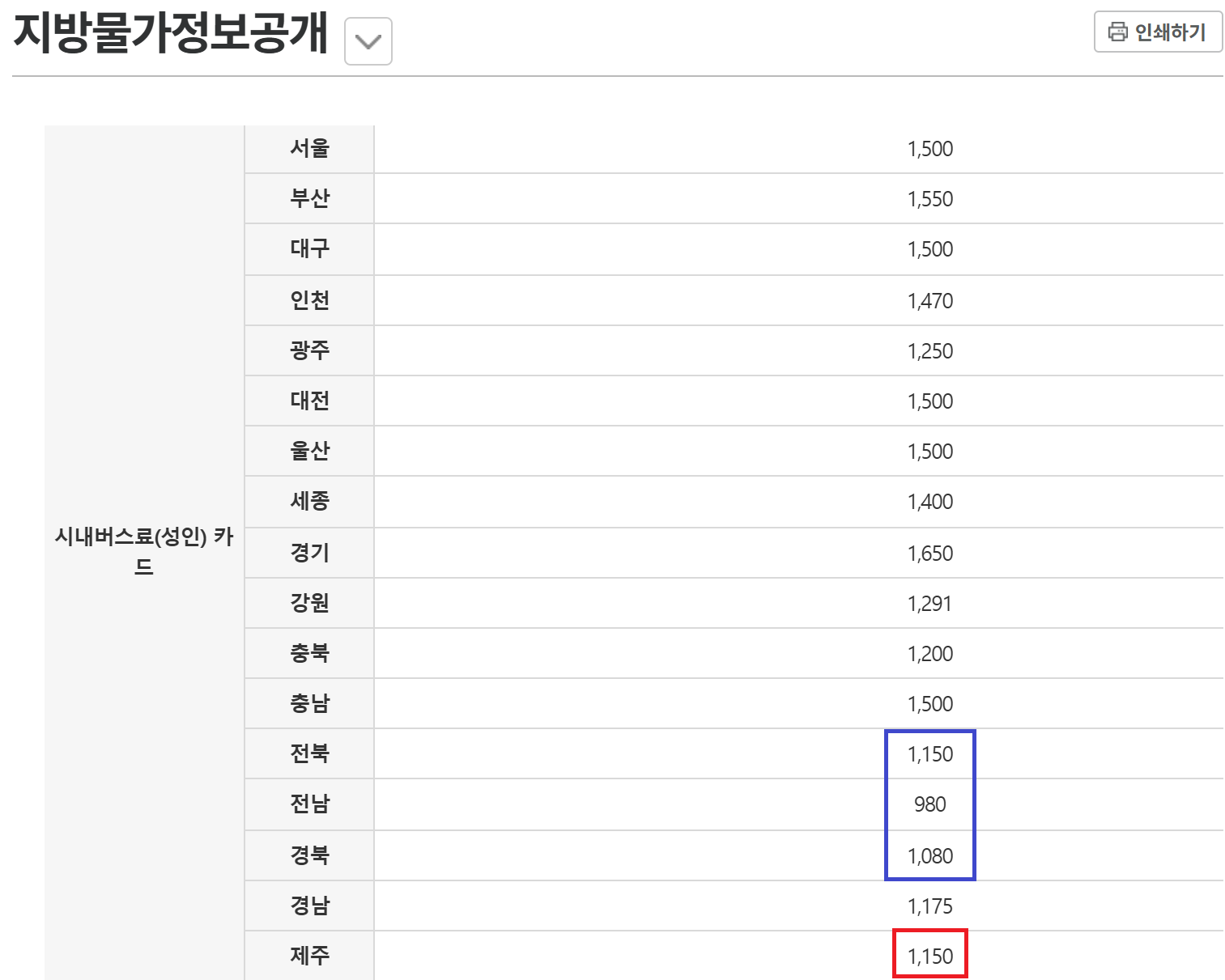 ÇàÁ¤¾ÈÀüºÎ Áö¹æ¹°°¡Á¤º¸°ø°³ 2025³â 11¿ù ±âÁØ, ±¤¿ªÀÚÄ¡´Üü ½Ã³»¹ö½º Æò±Õ ¿ä±Ý³¢¸® ºñ±³ÇßÀ» ¶§,