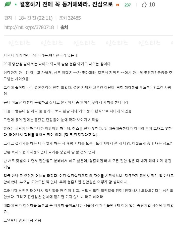 µ¿°Å¶û °áÈ¥Àº ´Ù¸§. µ¿°ÅÇÏ´Ù ½Î¿üÀ»¶§ µå´Â 'Çì¾îÁú±î?'¶õ »ý°¢Àº µé±â ½±°í Çൿµµ ½±Áö¸¸ °áÈ¥ ÈÄ ½Î¿îµÚ¿£ 'ÀÌÈ¥ÇÒ±î?'ÇÏ´Â »ý°¢Àº ½ºÃĵµ Çൿ±îÁö ¿Å±â±â ½±Áö¾ÊÀ½.. À¢¸¸Çؼ± ¼·Î »ç°úÇϰí ÈÇØÇÏ°í ±×·¯¸é¼ °¡Á·ÀÌ µÇ¾î°¡´Â°ÅÁö