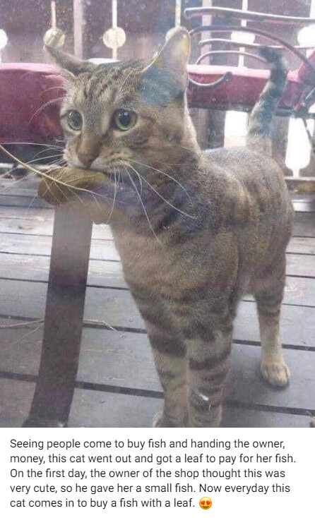 ÁÖÀÛÀÌ·¡¿ä. (¿µ¾î ´º½º: https://www.therakyatpost.com/fun/2023/01/09/this-cat-buys-fish-with-leaves-but-some-are-not-buying-the-story/ ) ¿ä¾à: ¿ø·¡ ·¹µ÷¿¡¼ À¯¸íÇß´ø »çÁøÀÌ°í ±×³É ´©±¸³× °í¾çÀ̰¡ ³ª¹µÀÙ ¹°°í ÀÖ´Â °Çµ¥ ¾ð³ðÀÌ ÁÖÀÛÁúÇØ¼ Æ®À§ÅÍ¿¡ ¿Ã¸° °Å·¡¿ä.