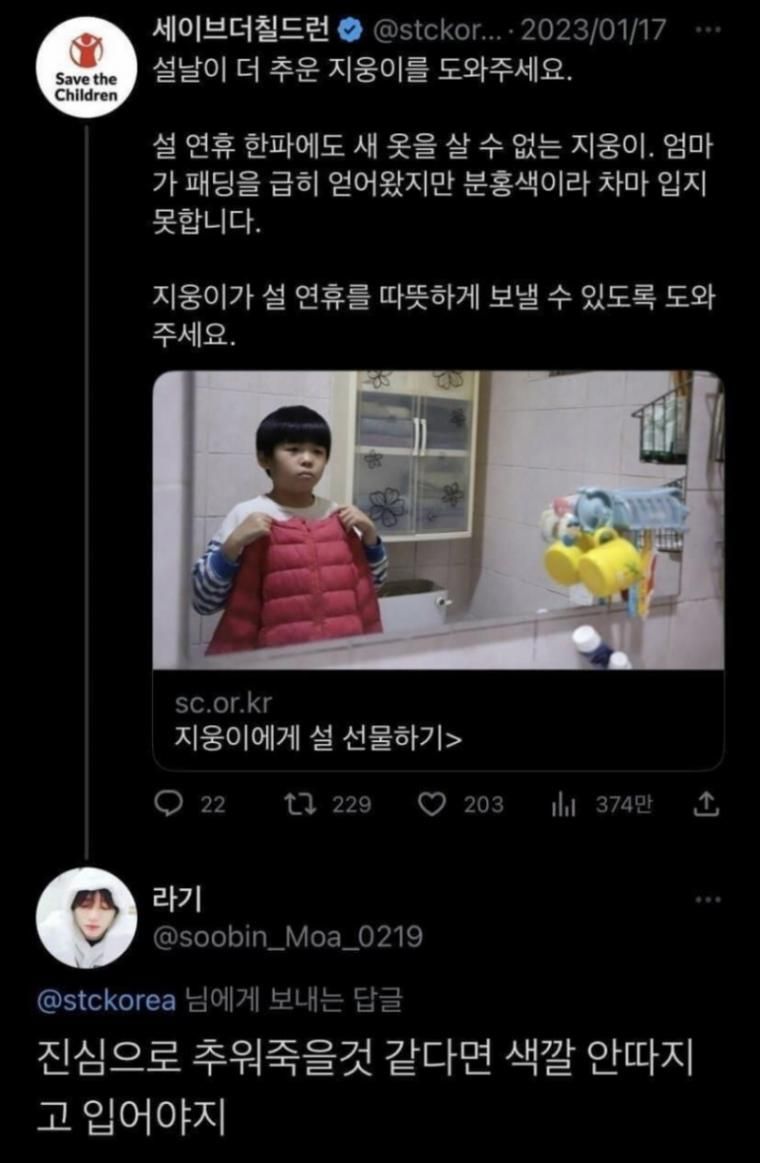 ÈÄ¿øÀÚ°¡ ÈÄ¿øÇÏ´Â ¾ÆÀÌ¿¡°Ô °Ü¿ï¿Ê °Ñ¿ÊÀ» »çÁÙ±î ÇÏ°í ¹°¾îº¸´Ï, ƯÁ¤ ºê·£µåÀÇ »çÀÌÁî±îÁö ÁöÁ¤Çؼ­ »ç´Þ¶ó°í Çß´ø ±ÛÀÌ ¶°¿À¸£³×...