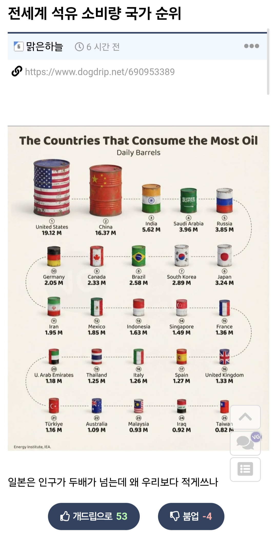 Á¦¸ñ Àü¼¼°è ¼®À¯ ¼Òºñ·® ±¹°¡ ¼øÀ§.🛢🛢🛢 [6]