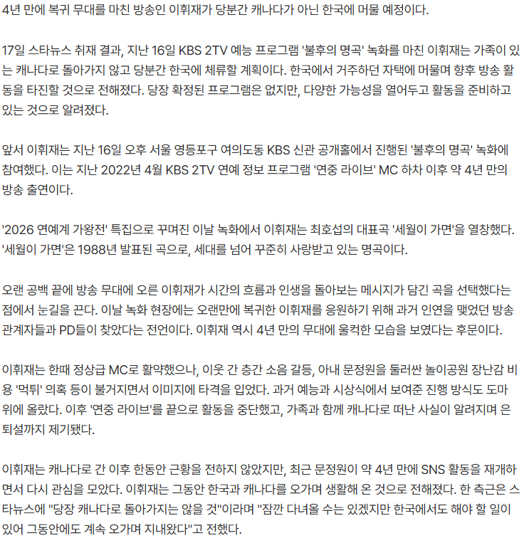 Á¦¸ñ [´Üµ¶]"ij³ª´Ù ¾È °£´Ù"..ÀÌÈÖÀç, 4³â ¸¸ º¹±Í ÈÄ ùÛ¼­ Ȱµ¿ ¸ð»ö [8]
