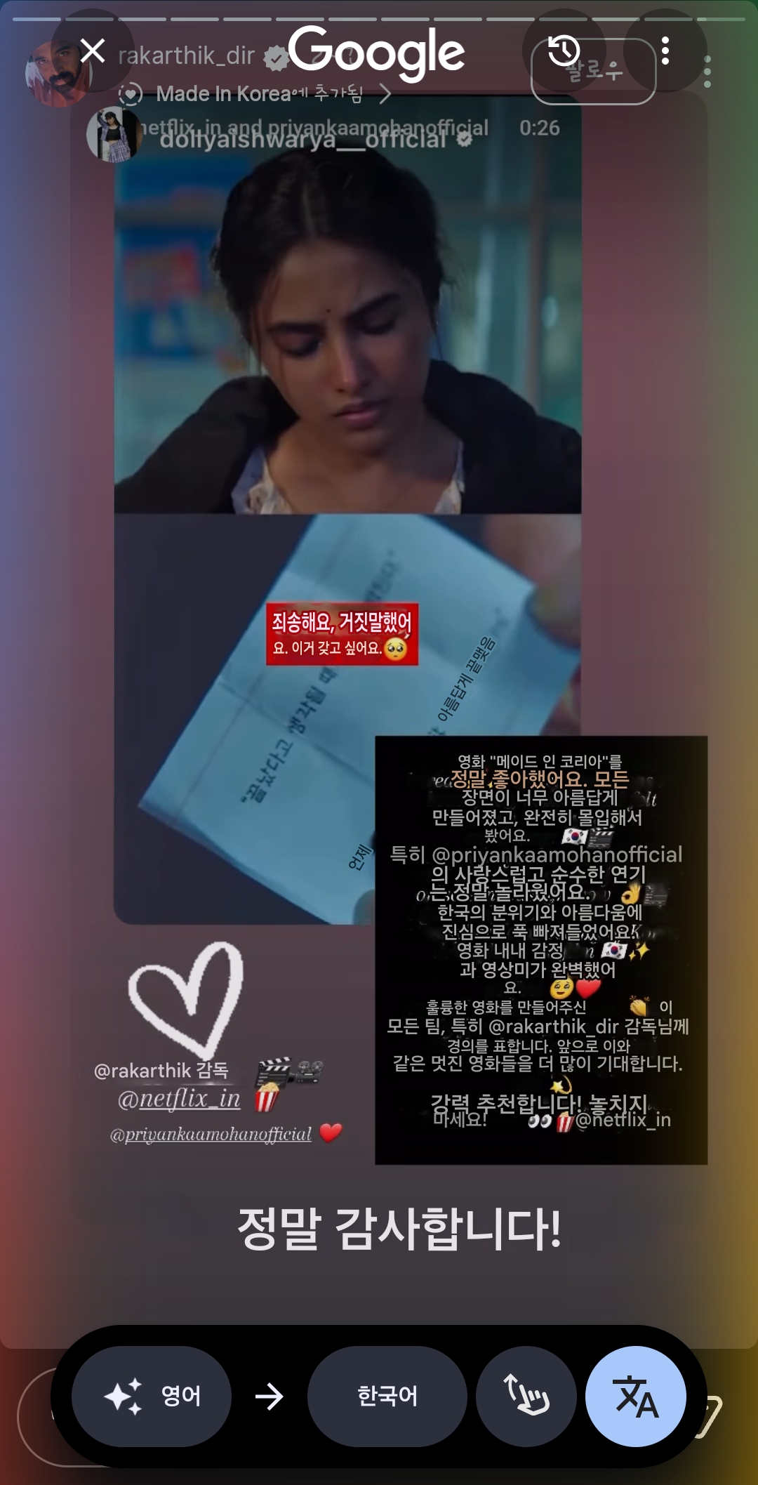 ¿µÈ­ °¨µ¶ÀÌ ÀνºÅ¸¿¡ °øÀ¯ÇÑ °¨»óÆòµé