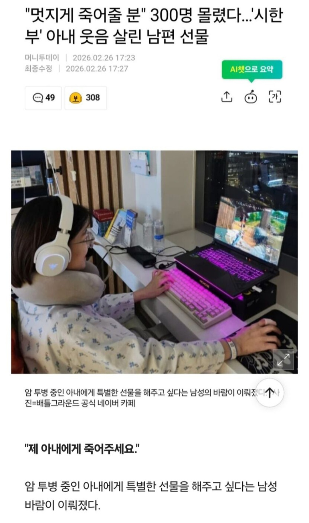 Á¦¸ñ ½ÃÇѺΠ¾Æ³» À§ÇØ 'ų' ´çÇØÁÖ½Ç ºÐ, ³²Æí ºÎŹ¿¡ 300¸í ¸ô·Á(feat.¹èƲ±×¶ó¿îµå)