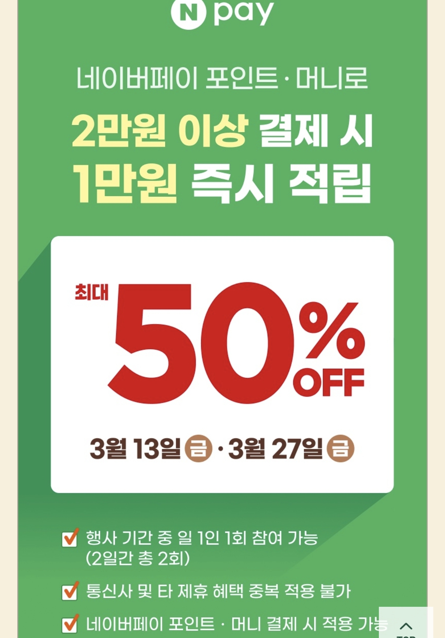 ³×À̹öÆäÀÌ 2¸¸¿ø °áÁ¦½Ã 50%ÆäÀ̹é?