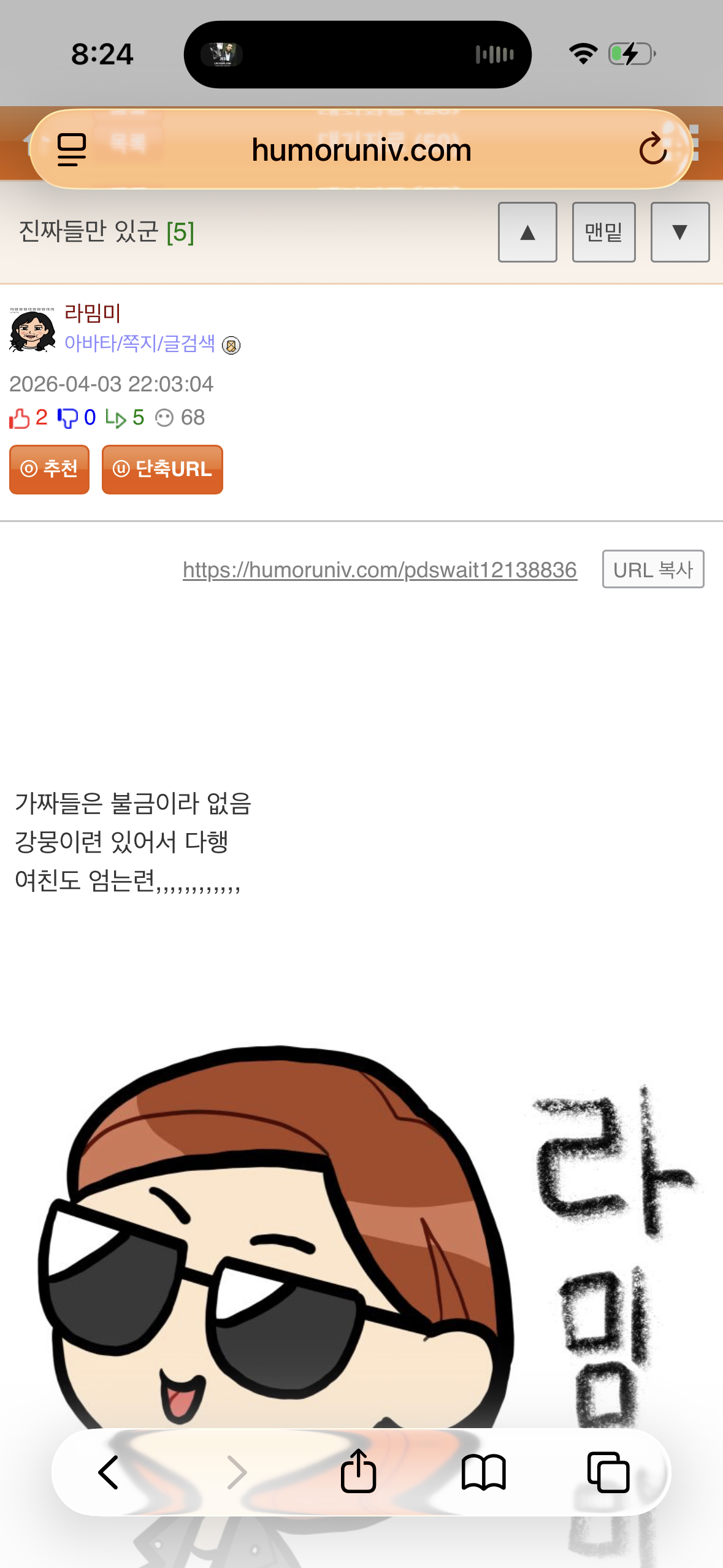 | ´ÜÃà URL: https://humoruniv.com/pdswait12139968 URL º¹»ç |