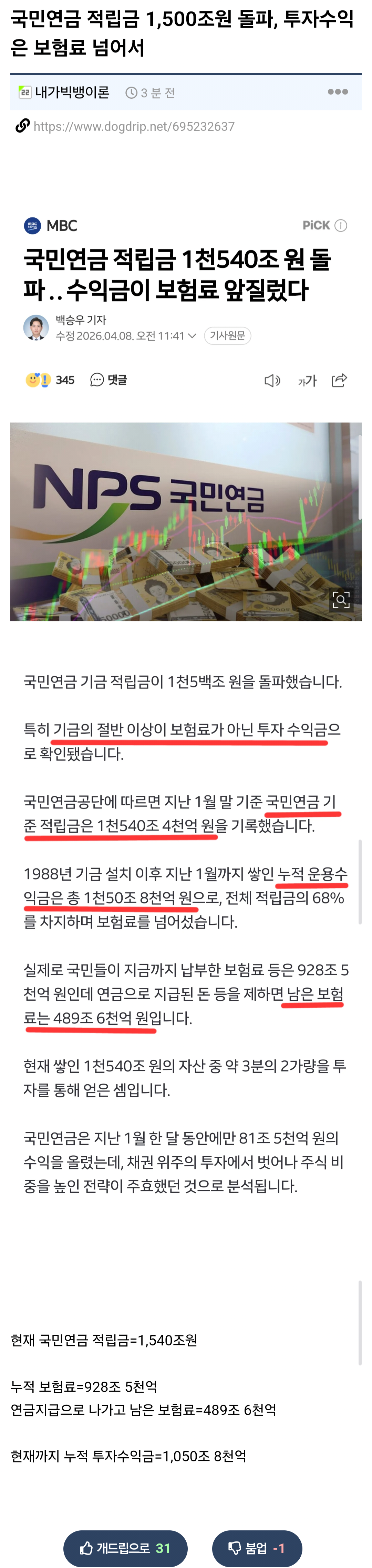 Á¦¸ñ ±¹¹Î¿¬±Ý Àû¸³±Ý 1,500Á¶¿ø µ¹ÆÄ, ÅõÀÚ¼öÀÍÀº º¸Çè·á ³Ñ¾î¼­ [4]