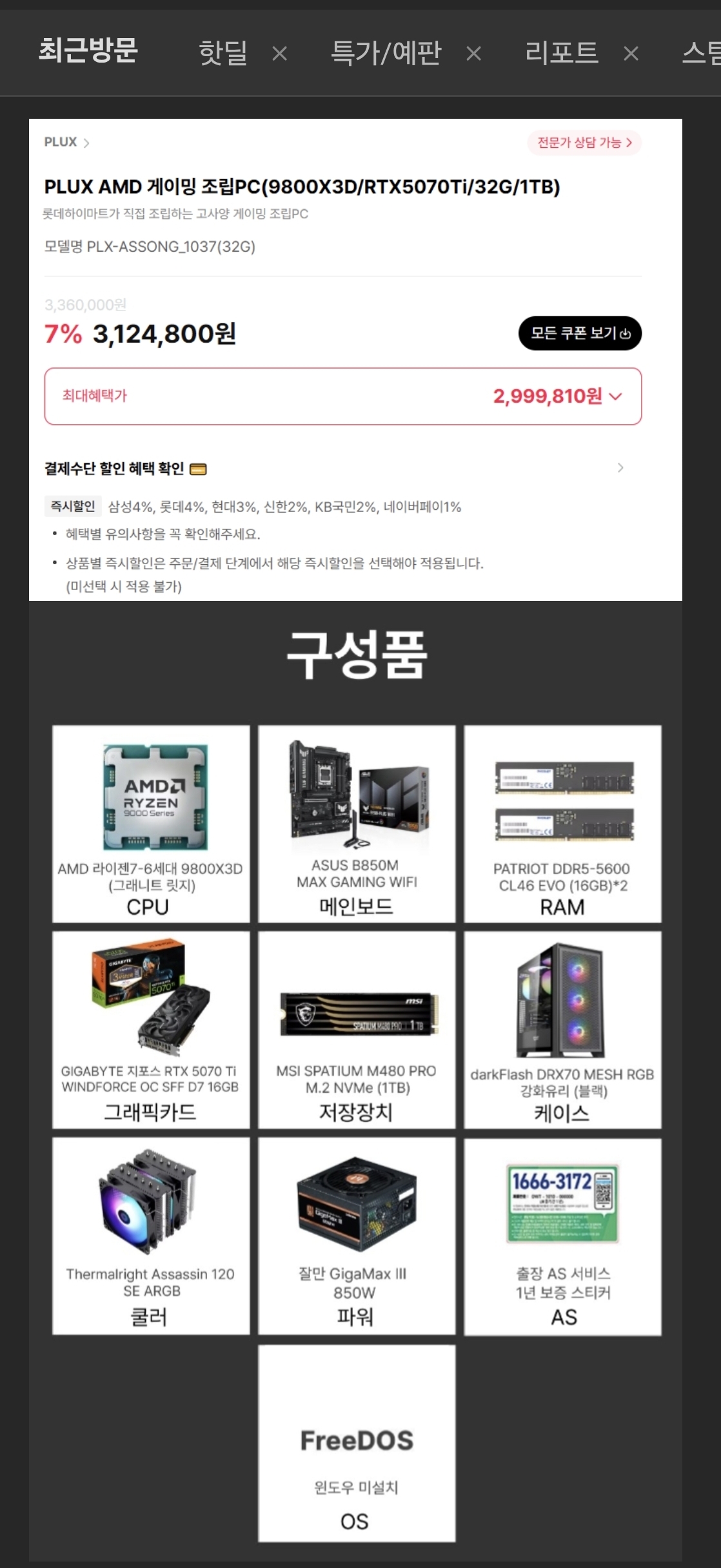 GPU´Â 5070ti°í CPU´Â 9800X3D