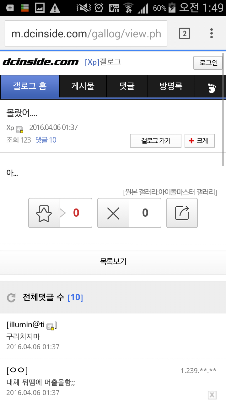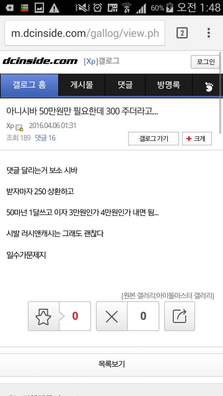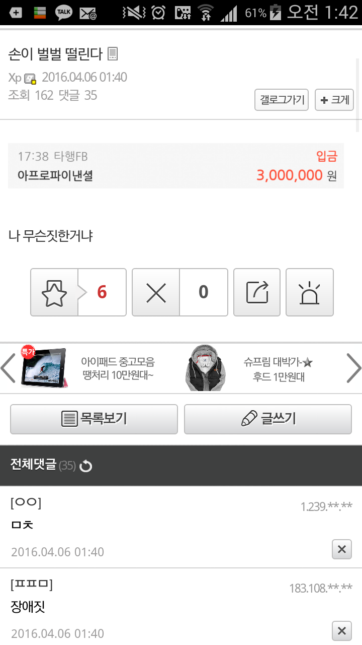 ¹øÈ£ 12160241 Ãßõ 7 ¹Ý´ë 0 ´ä±Û 6 Á¶È¸ 244 ÀÛ¼º½Ã°£ 2026-04-18 23:05:55