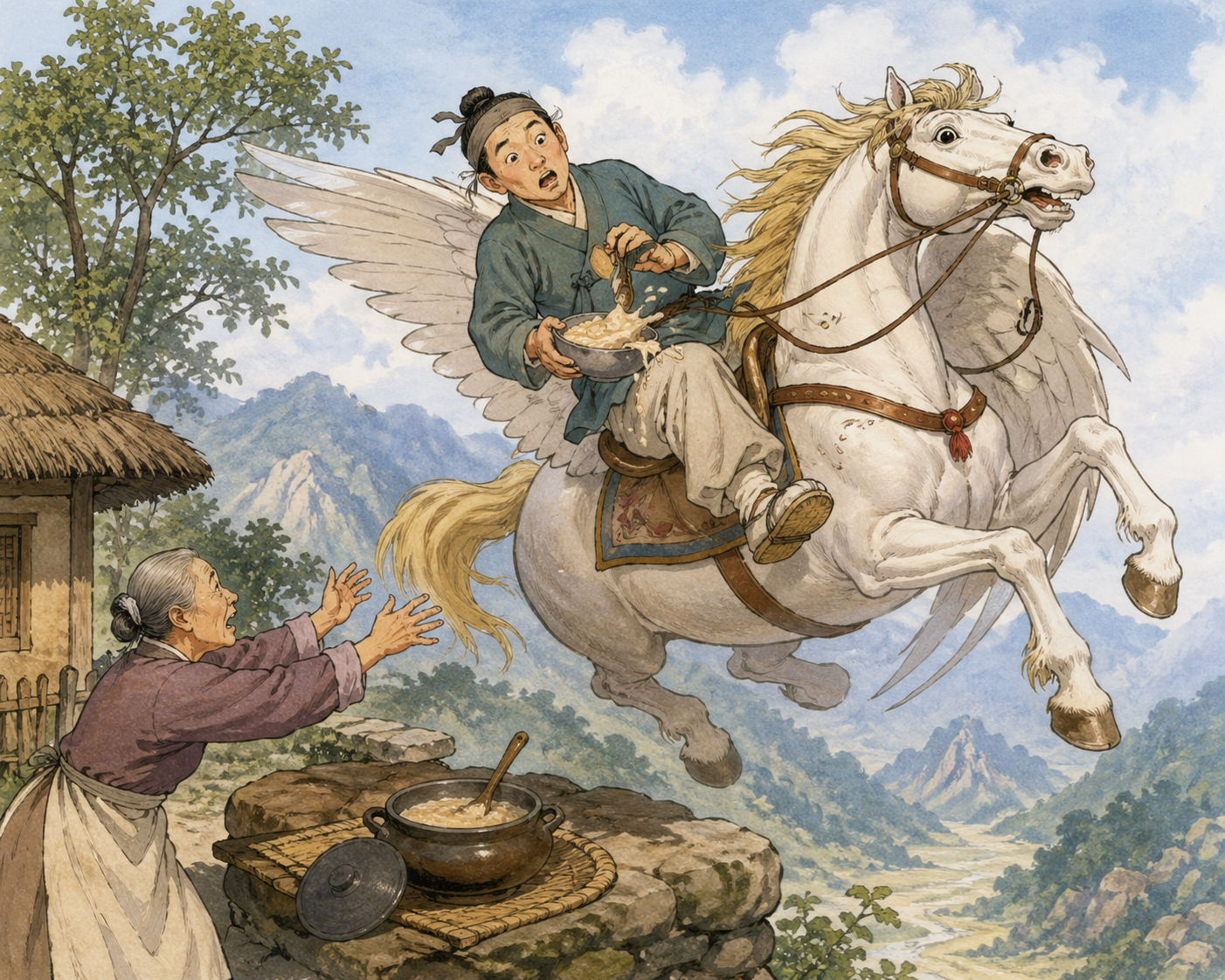 ¾î¸Ó´Ï´Â ´«¹°À» È긮¸ç µû¶æÇÑ È£¹ÚÁ×À» ²ú¿© ÁÖ¾ú´Ù. ³ª¹«²ÛÀº ¸» À§¿¡ ¾ÉÀº ä·Î Á×À» ¹Þ¾Æ ¸Ô¾ú´Ù. ±×·±µ¥ ³Ê¹« ±ÞÇÏ°Ô ¸Ô´Ù°¡ Á×À» Á¶±Ý È긮°í ¸»¾Ò´Ù. ¶ß°Å¿î Á×ÀÌ ¸» µî¿¡ ¶³¾îÁöÀÚ ¸»ÀÌ ±ô¦ ³î¶ú´Ù. È÷ÀÌÀ×—! ¸»Àº Å©°Ô ³¯¶Ù¸ç Çϴ÷Π³¯¾Æ¿Ã¶ú°í, ³ª¹«²ÛÀº ±× ÀÚ¸®¿¡¼ ¶³¾îÁ® ¹ö·È´Ù. ¡°¾Æ¡¦!¡± ³ª¹«²ÛÀÌ Á¤½ÅÀ» Â÷·ÈÀ» ¶§, ¸»Àº ÀÌ¹Ì ÇÏ´Ã ÀúÆíÀ¸·Î »ç¶óÁö°í ¾ø¾ú´Ù. ±×´Â ´Ù½Ã´Â Çϴóª¶ó·Î ¿Ã¶ó°¥ ¼ö ¾ø°Ô µÇ¾ú´Ù. ±× ÈÄ·Î ³ª¹«²ÛÀº ¸ÅÀÏ ÇÏ´ÃÀ» ¹Ù¶óº¸¸ç ¾Æ³»¿Í ¾ÆÀ̵éÀ» ±×¸®¿öÇÏ¸ç »ì¾Ò´Ù°í ÇÑ´Ù. ¾î¶² À̾߱⿡¼´Â ±×°¡ ½½ÇÄÀ» À̱âÁö ¸øÇÏ°í ¼öżÀÌ µÇ¾î, ³¯¸¶´Ù »õº® ÇÏ´ÃÀ» ÇâÇØ ¿ï¾ú´Ù°íµµ ÀüÇØÁø´Ù.