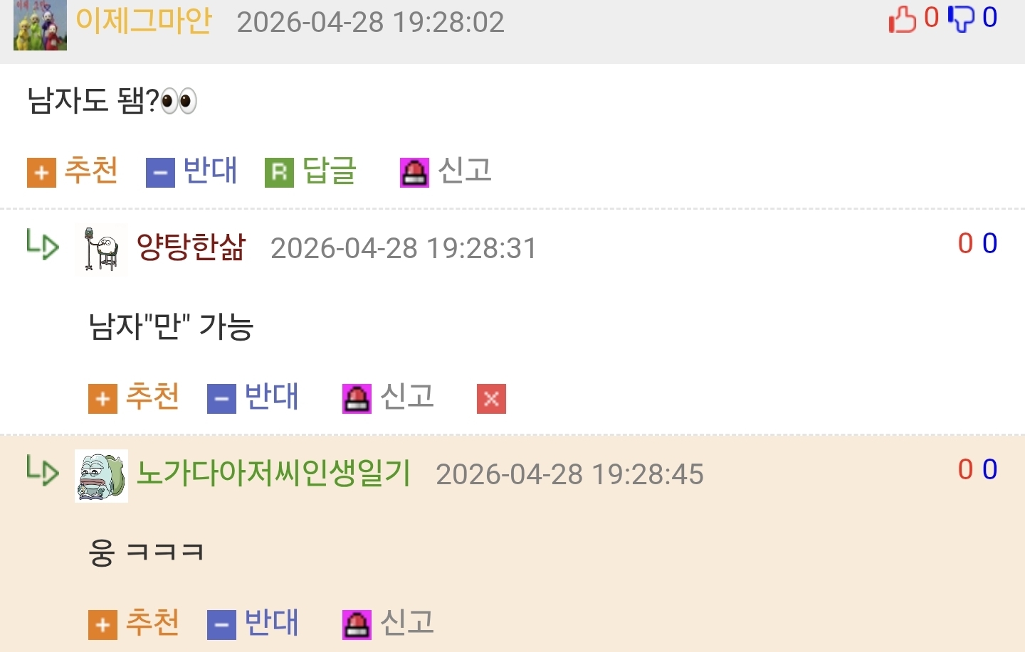 »ó´ë¹æ¿¡ ´ëÇÑ ¹è·Á´Â ³×ƼÄÏÀÇ ±âº»ÀÔ´Ï´Ù.°Ô½Ã¹°¿¡ »ó°ü¾ø´Â ´ä±ÛÀ̳ª ÃßõÀ¯µµ¼º ´ä±ÛÀ» ´ÞÁö ¸¶¼¼¿ä.