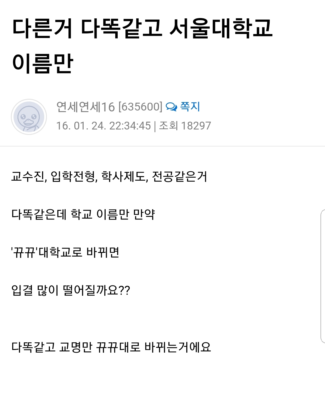 Àü¿¡µµ ¸»ÇßÁö¸¸ ¼¿ï´ë°¡Çϸé À̰͵µ Á½°£ÁöÀÓ. ²ó²ó´ë ÀÇ´ë ´Ù´Ï´Âµ¥¿ä?