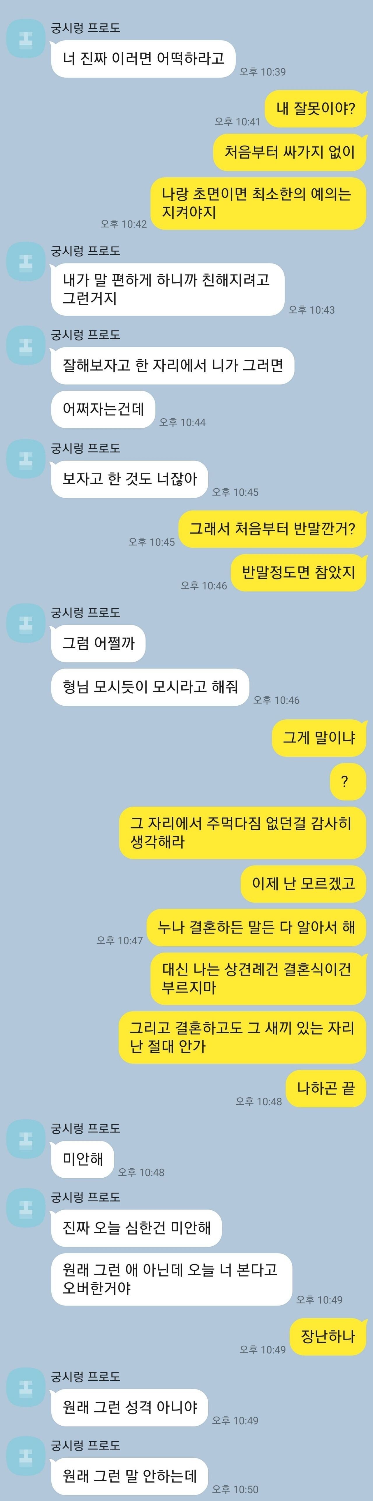 ´©³ª³âÀÇ ' Âü ³ª ³Ê´Â ¹¹ ´Ù ÀßÇß³Ä'·Î ³íÁ¡ Èå·Á¼ °³ÆÇ Ä¡·Á´Â°Ô µü Áö ³²Ä£À̶û À¯À¯»óÁ¾, ºñ½ÁÇÑ ¼öÁØÀÇ °áÈ¥ À̶ó°í ´À²¸Áö°í, ¹Ý¸é¿¡ µ¿»ýÀº °Å±â¿¡ ¸»¸®Áö ¾Ê°í ±ò²ûÇÏ°Ô '´Ù¸¥ ÁÖÁ¦ ²¨³»Áö ¸¶¶ó' ÇÑ ¸¶µð·Î ĿƮ ÇÏ´Â°Ô ´ë´ÜÇÏ´Ù