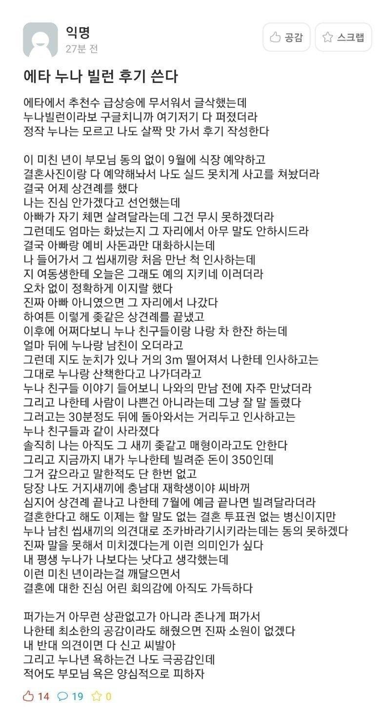 ÆÛ¿Â±ÛÀÌÁö¸¸ ¿ø±Û ¾´»ç¶÷ Èû³»¶ó .. ³» ¸ÅÇüÀº ºÎó´Ù ¾ÆºÎÁö ºú¸¸³²±â°í µ¹¾Æ°¡¼ÌÀ»¶§ Áý¾È¿¡ µ· º¸ÅÈ´Ù ¾ö¸¶ÀçÈ¥ ÇÏ°í³ª¼ ±×°Å¶§¸Þ °¡Á· ´Ù ÆÄź³ª±äÇßÁö¸¸ .. ³»Á׾ ÀÌõ °í¼Óµµ·Îµµ ¾È¹â´Â´Ù