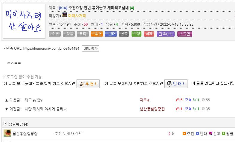 | ´ÜÃà URL: https://humoruniv.com/pride1228140 URL º¹»ç |
