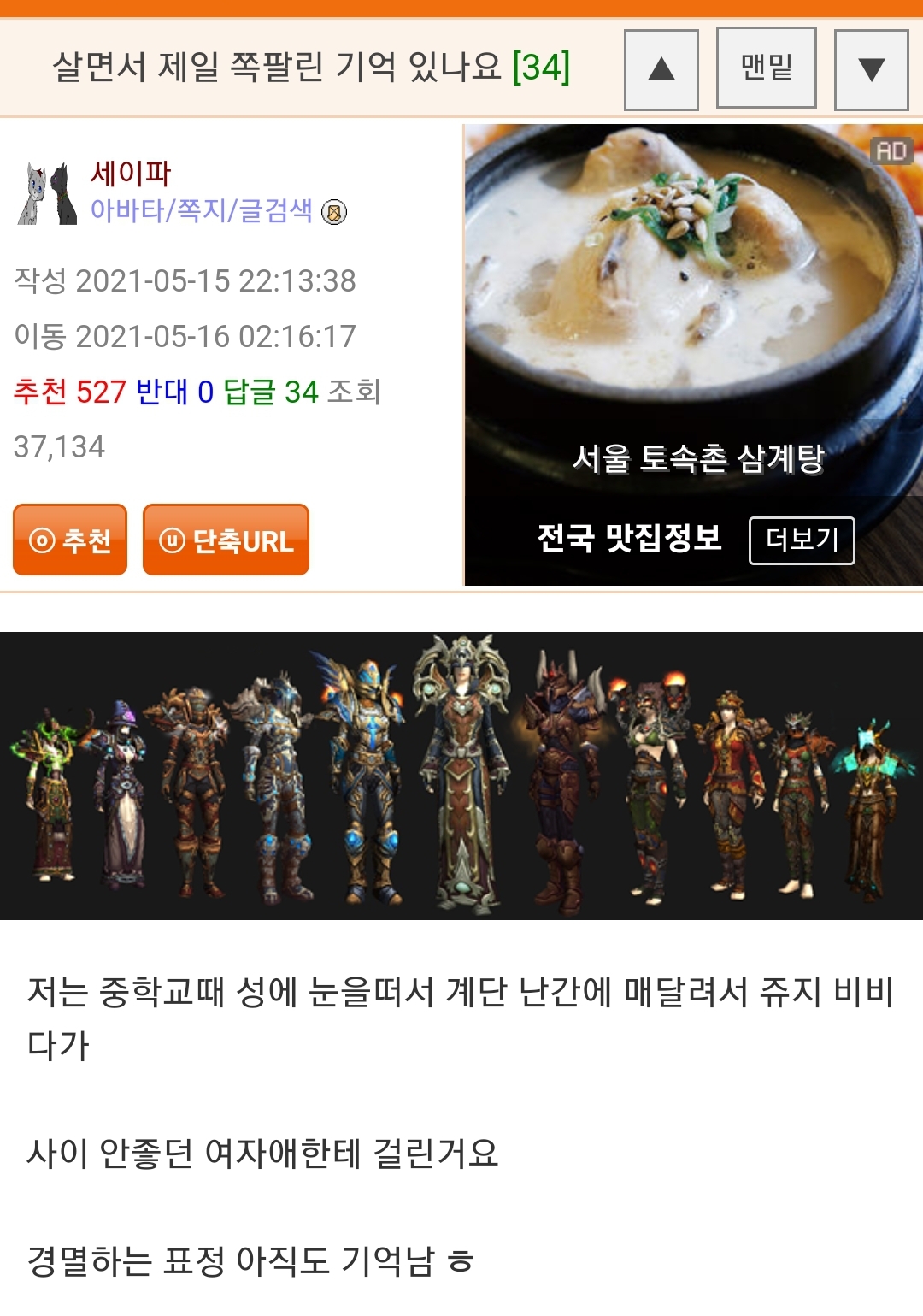 ³ª¶û °°Àº °æÇèÀ̱º. ³ª ¼¼½ÅÇØÁֽôø ºÐÀº ±×°Å º¸´õ´Ï ÀÌŸ®Å¸¿Ã·Î ³» ¾ûµ¢ÀÌ ¿·ºÎºÐ ÅöÅöÄ¡¸é¼ "µÚÁý¾î"¶ó°í ÇÔ.