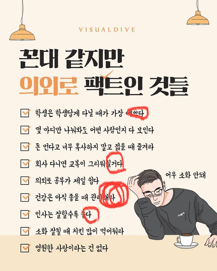 ´ñ±Û¸¸ ºÁµµ »ç¶÷ÀÌ º¸ÀÌ´Â °æ¿ì°¡ ¸¹´õ¶ó./ÀþÀ» ¶§ Áñ±â¶ó´Â°Ç.. À½ÁÖ°¡¹« ¸»°í ¿©ÇàÀ̳ª ¹öŶ¸®½ºÆ® °°Àº°É ¸»Çϴ°Ŷó.. ¶È°°Àº°É ÇØµµ ÀþÀ» ¶§¸¸ Áñ°Å¿î °ÍµéÀÌ ÀÖ¾î¼ ±×·±°É°Å¾ß./°øºÎ°¡ Á¦ÀÏ ½¬¿î°É ´À²¼À» ¶§´Â °øºÎ¸¸ Çϱ⿣ »î¿¡ ºÎ´ë²¸¼ µµÀüÀÌ ½±Áö ¾Ê°í.. »ç½Ç ¾î¸± ¶§´Â ±×°É ¾Ë±â ¾î·ÆÁö./³ªÀ̵é¸é Æ¢±è¿Ê Èûµé¾î../Áö±Ý ´çÀåÀº ±× »ç¶÷ÀÌ ÀüºÎÀ̰í Çì¾îÁö¸é Á×À» °Íµµ °°Áö¸¸ ¾îÂ÷ÇÇ ¿µ¿øÇÏÁø ¾ÊÀ¸´Ï ¸Å¸ôµÇÁö ¸»¶ó´Â ¸»ÀÎ µí.