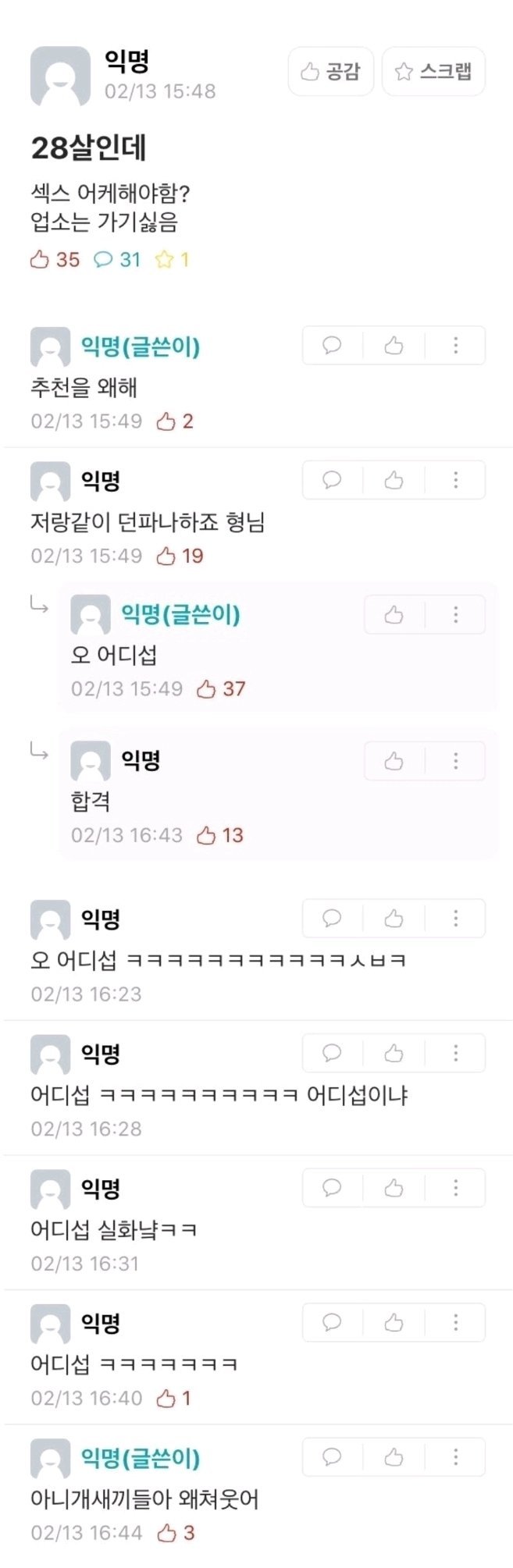 »ó´ë¹æ¿¡ ´ëÇÑ ¹è·Á´Â ³×ƼÄÏÀÇ ±âº»ÀÔ´Ï´Ù.°Ô½Ã¹°¿¡ »ó°ü¾ø´Â ´ä±ÛÀ̳ª ÃßõÀ¯µµ¼º ´ä±ÛÀ» ´ÞÁö ¸¶¼¼¿ä.