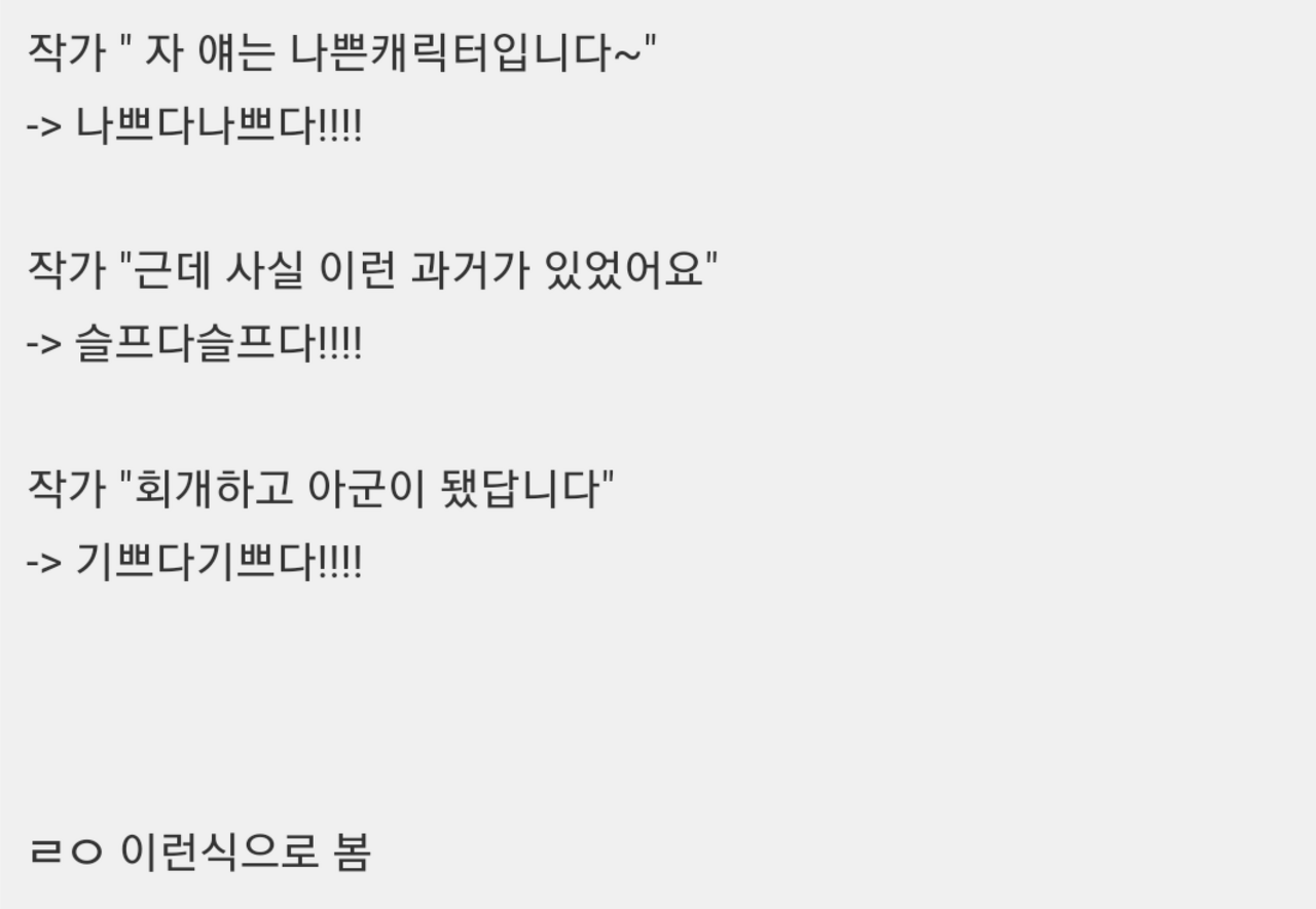 ij¸¯ÅÍ¿¡ ³ª¸§ÀÇ ÀÔü¼º ºÎ¿©³ª ´Ù¸¥ ¸é¸ð,»ç¿¬À» º¸¿©ÁÙ¼öÀִ°űîÁö ½ÎÀâ¾Æ ¹«Áö¼º ¼¼Å¹±â¹«»õÇÏ´Â°Ô Á» ½ÉÇϱäÇÔ. ÀÌ°É ±¸ºÐÀ» ¸øÇÏ´Â ¹Ì¼÷ÇÑ µ¶ÀÚµéÀÌ ¸¹¾Æ. ¹°·Ð ±ÕÇüÀ» ¸ø Àâ°Å³ª Ç¥ÇöÀ» À߸øÇÏ´Â ÀÛ°¡ÀÇ °æ¿ìµéµµÀÖÁö¸¸. ±Ùµ¥ ³ª»Û ij¸¯ÅÍ´Â ³ª»Ú°Ô ¼ÒºñÇØ¹ö¸®¸é ÀÛǰÀÌ ¾è¾ÆÁö´Âµ¥ ±×°Ç ÁÁÀº°¡½ÍÀ½¤»¤»