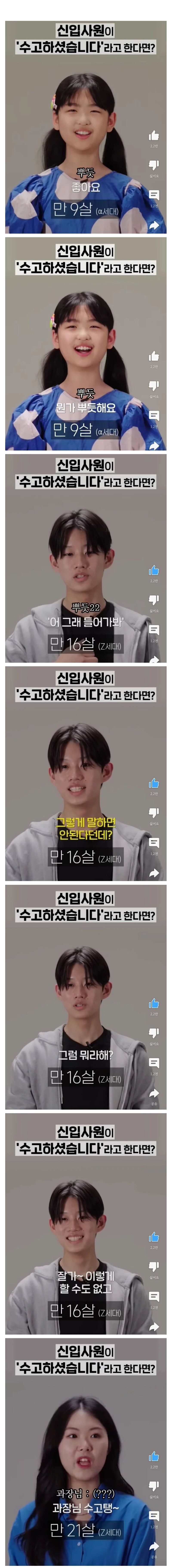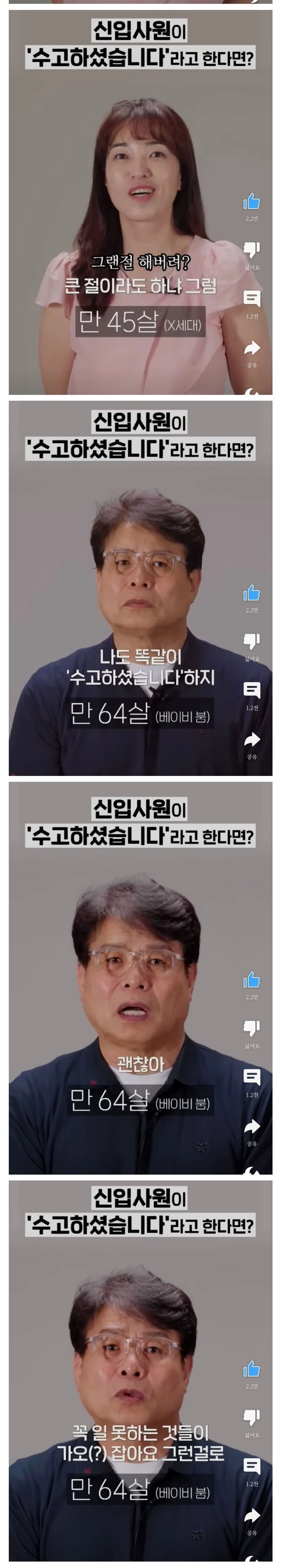 ³ª¸§ Å« ±Ô¸ðÀÇ »ç¹«½Ç¿¡¼ ÀÏÀ» ÇØºÃ´Âµ¥.. ·¹¾Ë ¾î¸°¾ÖµéÀÌ (20´ë ÃÊÁß¹Ý, °íµîÇб³ Á¹¾÷ÇÏ°í ¹Ù·Î ¿Â ¾Öµé) ²Á´ëÁúÀÌ ´õ ½ÉÇÔ. 60´ë ºÎÀå´ÔÀÌ °¡Àå ¸»ÀÌ ÅëÇÏ´Â »ó´ë°í ³ª¸ÓÁö´Â SNLÄÚ¸®¾Æ¿¡ ³ª¿À´Â ´À³¦ÀÓ. »ç½Ç 60´ë ºÎÀå´ÔµéÀº ±× ´ç½Ã¿¡´Â ³ªÃ³·³ °íºÐ°íºÐÇß´ø ÀÌÀ¯°¡ ÀåÀ¯À¯¼ ¼³¸¶ µÚ¹Ù²î°Ú³Ä? ³ªÁß¿¡ ³» ½Ã´ë°¡ ¿À°ÚÁö. ÇÏ°í ¹öƼ¼ÌÀ»ÅÙµ¥.. ±×³É ±× ¾Õ¿¡ ²Á´ë¼¼´ë¿Í ±× µÚ¿¡ ²Á´ë¼¼´ëÀÇ ³¢¾îÀÖ´Â ºÐµéÀÎ °Í °°À½