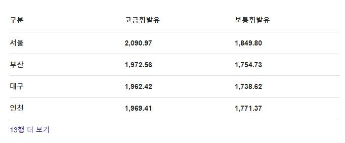 ¹è Ÿ°í ¼öÀÔÇØ¿À´Â ÈÖ¹ßÀ¯ 1¸®ÅÍ 1849¿ø, °í±ÞÀ¯ 2090¿ø