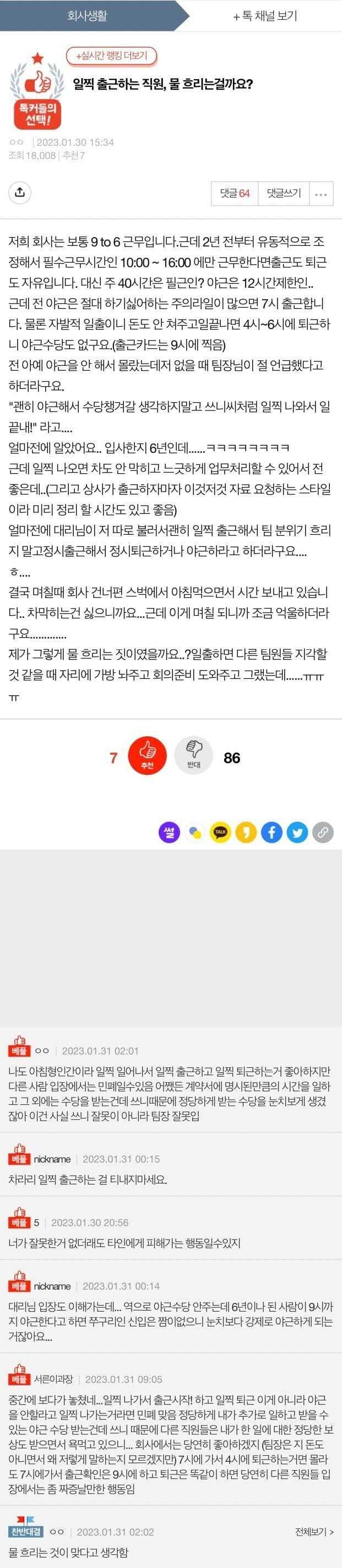 ¾ß±ÙÀº ¼ö´çÀ» Áִµ¥ Á¶±âÃâ±ÙÇØ¼­ Ãʰú±Ù¹«ÇÏ´Â °Ç ¼ö´çÀ» ¾È Áִ ȸ»çµµ ¹®Á¦°í, ±×°É ±»ÀÌ ´Ù¸¥ Á÷¿øµé¿¡°Ô ºñ±³Çذ¡¸ç ¶°µå´Â ÆÀÀåµµ ¹®Á¦°í, ºÎ´çÇÑ °É À§¿¡´Â Á¦´ë·Î ¸» ¸øÇϸ鼭 Àڱ⠱Ǹ® ì±â´Â °É °¡Áö°í ¾Æ·§»ç¶÷´õ·¯ ¹¹¶ó ÇÏ´Â ´ë¸®µµ ³­ ¹®Á¦¶ó°í »ý°¢ÇÔ