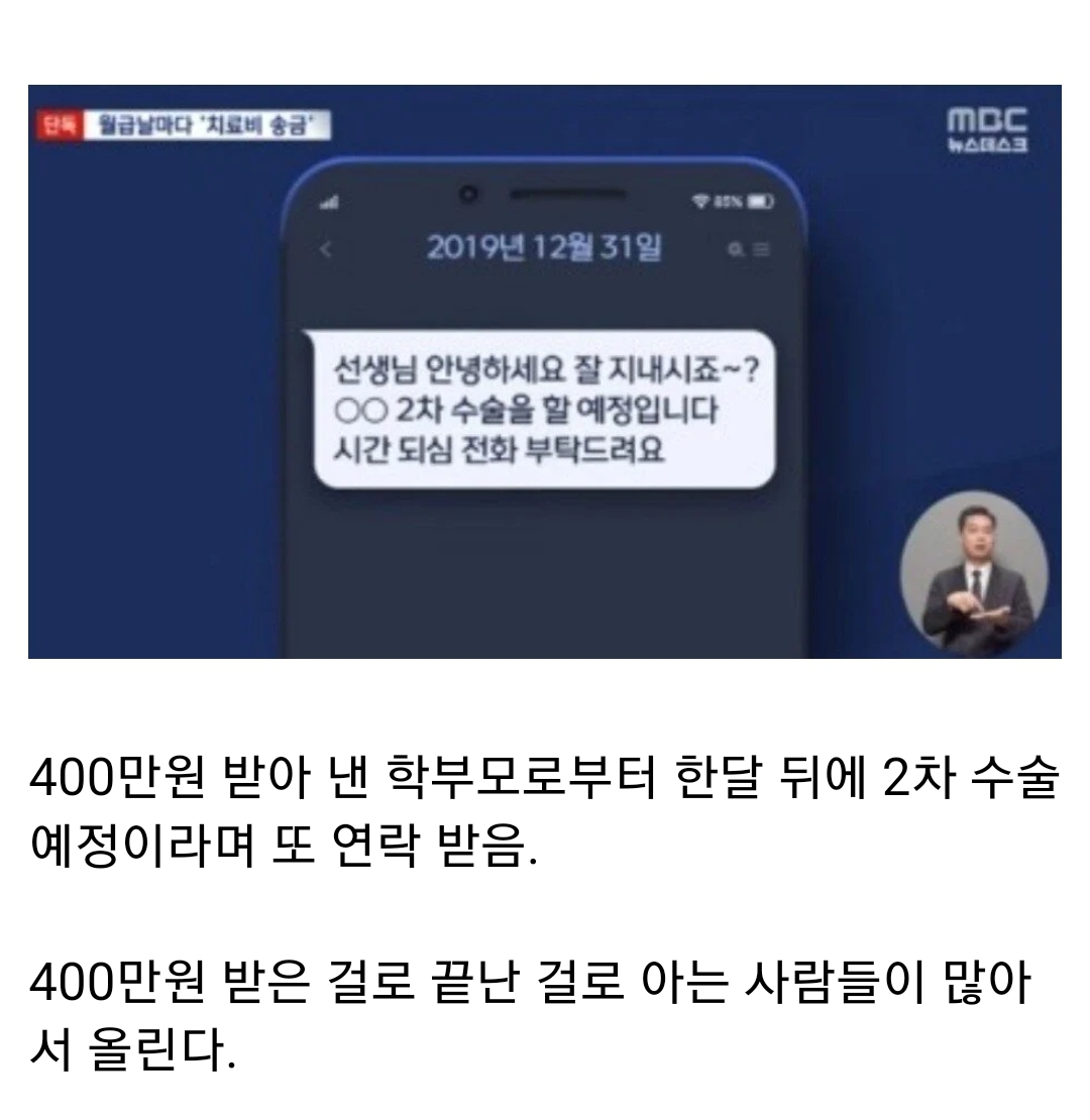 Âü°í·Î Ä¡·áºñ 100¸¸¿ø Á¤µµ ³ª¿Ô°í ÀÌ¹Ì Çб³ ¾ÈÀü °øÁ¦È¸¿¡¼ ´Ù Ä¡·áºñ ¹ÞÀº »óÅÂÀÓ ¤»¤»