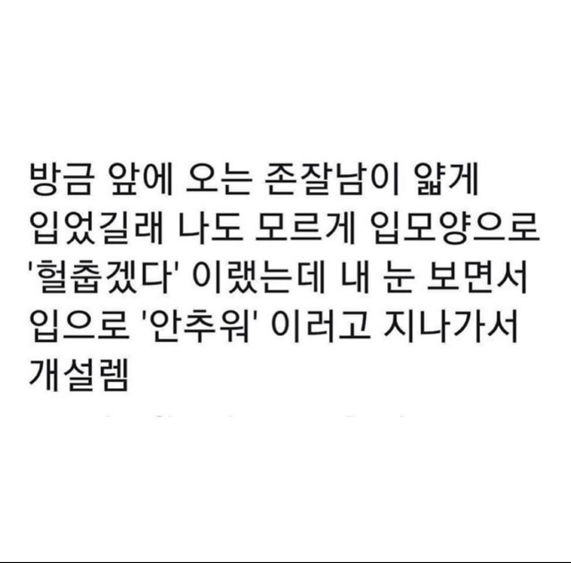 ³ªµµ À̺´¶§ ¼±ÀÓÀÌ ¾Õ±æ ²Ë ¸·°í Àֱ淡 ÀÔ¸ð¾çÀ¸·Î 'Àá½Ã¸¸..' Çߴµ¥ "Àá½Ã¸¸Àº ¹Ý¸»ÀÌÀÝ¾Æ »õ²¥" ÇÏ´õ¶ó