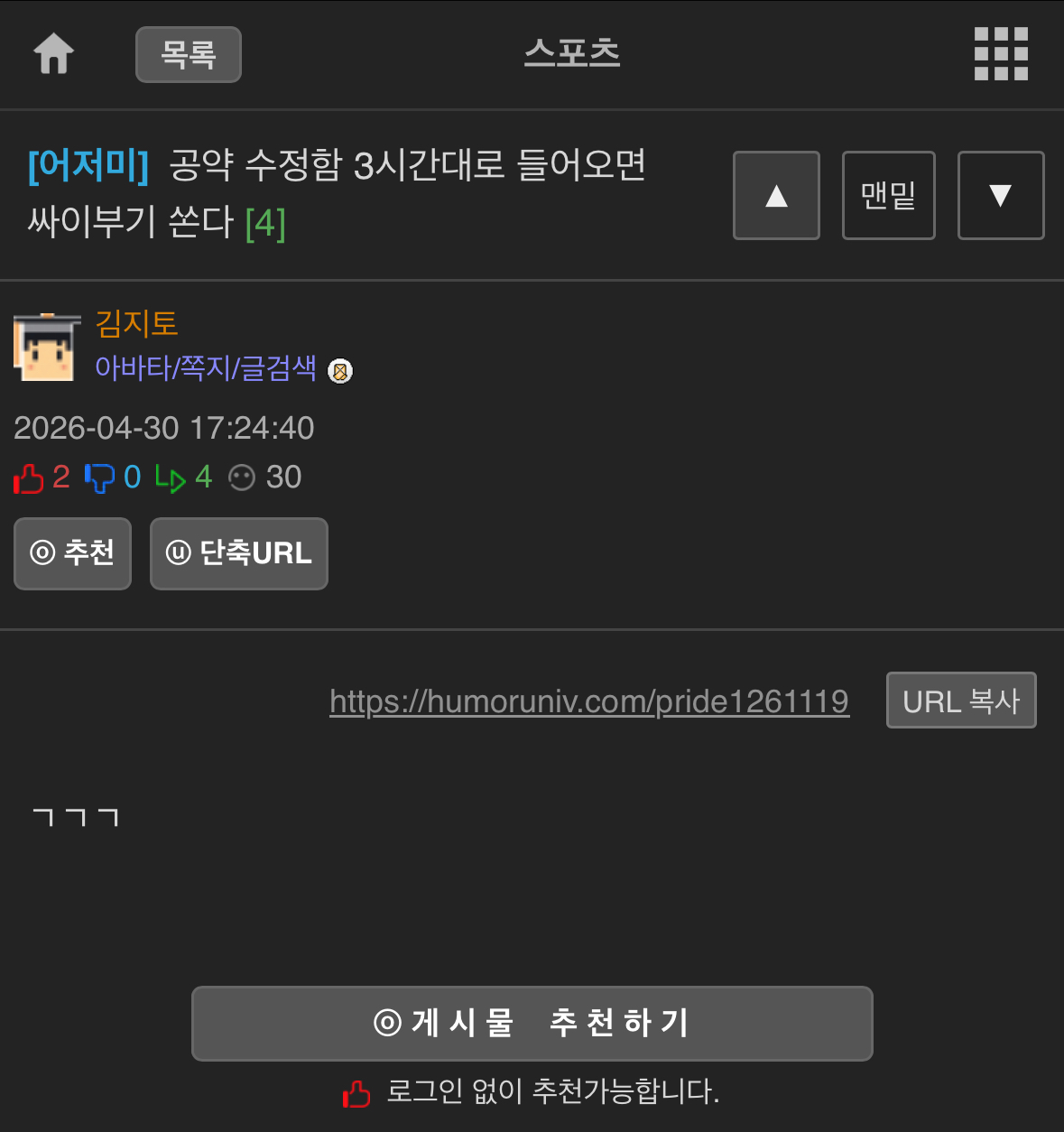 | ´ÜÃà URL: https://humoruniv.com/pride1261652 URL º¹»ç |