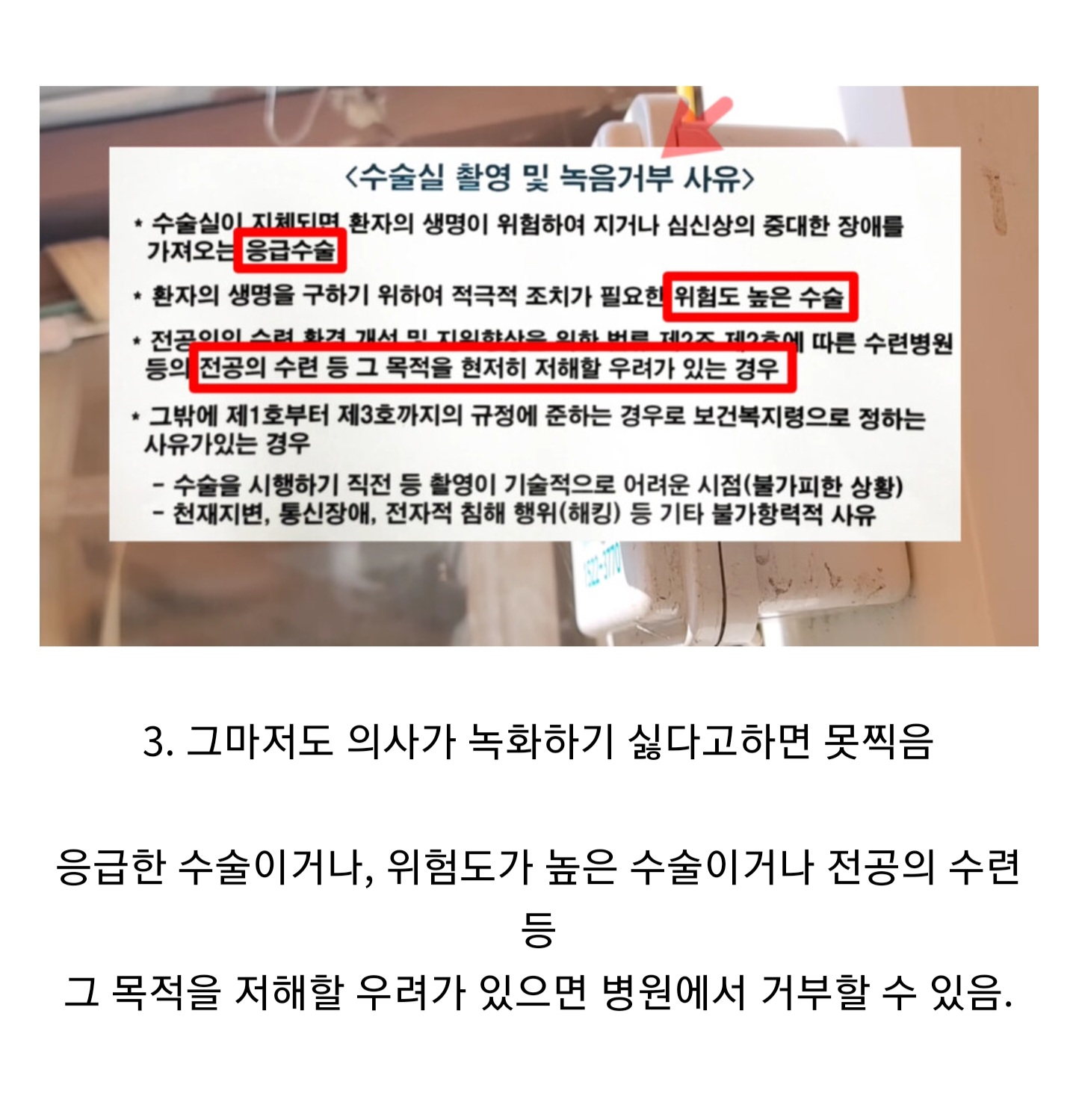 ¼ö¼úÇÒ¶© ±âº»ÀûÀ¸·Î º»Àξ˸ö ¿µ»óÀ¸·Î Âï´Â°Çµ¥ ¹°¾îº¸°í Âï´Â°Ô ´ç¿¬ÇѰÅÀÓ ; ¸ðµç ¼ö¼ú¹æ¿¡ cctv ´Þ¸®°Ô µÇ´Ï ±×³É ¼ö¼úÀü¿¡ Âï°í½ÍÀºÁö ¹°¾îº¸°ÚÁö..
