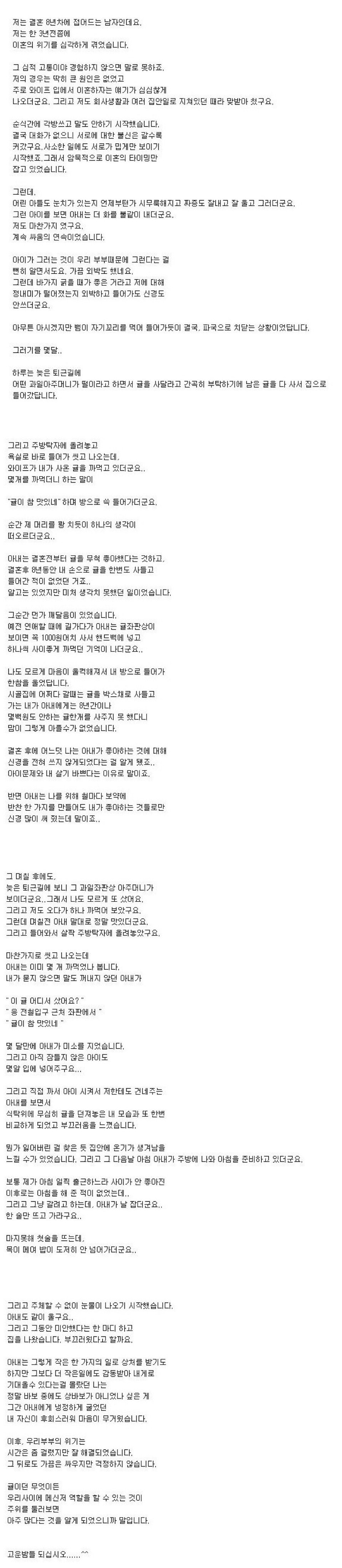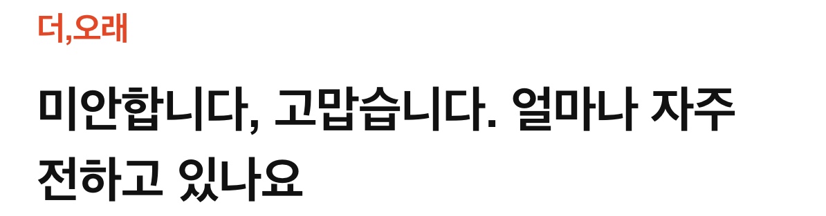 °áÈ¥ÇÑ »îÀÌ ÇູÇÏ´Ù°í ÀÚºÎÇÏ´Â ÆíÀε¥, ¾î¶»°Ô ±×°Ô °¡´ÉÇѰ¡ µ¹¾Æº¸¸é '°í¸¶¿ö' '¹Ì¾ÈÇØ' '»ç¶ûÇØ' ÇÏ´Â ¸»µéÀ» ¾Æ³¢Áö ¾Ê°í Çϱ⠶§¹®À̶ó »ý°¢ÇÔ. »ç½Ç ¿¬ÀÎÀ̳ª ºÎºÎ »Ó¸¸ ¾Æ´Ï¶ó '°á±¹ À̺°À» ¸ÂÀÌÇÒ' ´©±¸¿¡°Ôµç °¨»çÇÔ°ú ¹Ì¾ÈÇÔÀ» ¼ÖÁ÷ÇÏ°Ô Ç¥ÇöÇÏ´Â °Ô ÁÁ´Ù°í ¹ÏÀ½