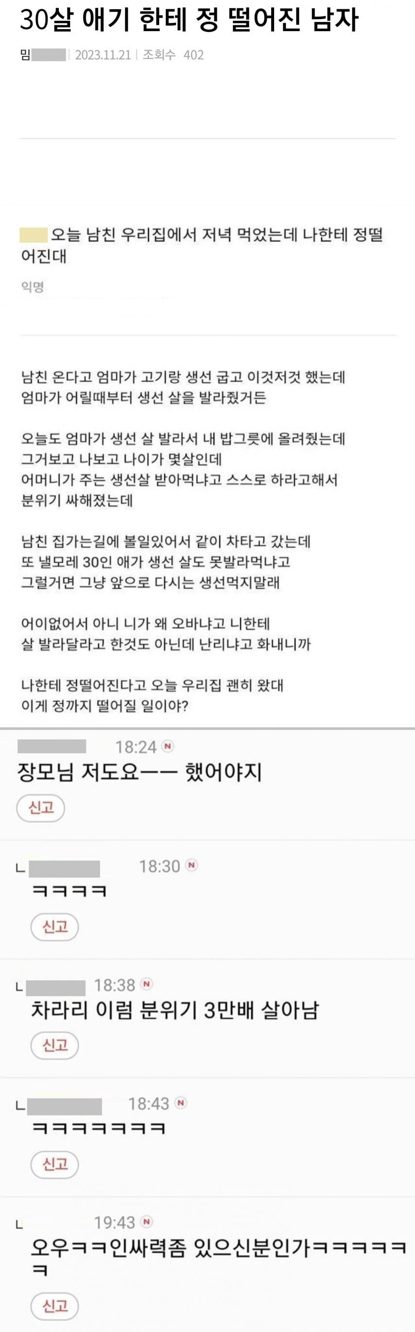 30»ì ¾Ö±âÇÑÅ× Á¤ ¶³¾îÁö´Â°Ô ÀÌÇØ°¡ ¾ÈµÇ´Â ³ðµéÀº ´Ù ³ªÁß¿¡ °áÈ¥ÇØ¼ 50~60»ì ¸Ô°í ÀÚ½Ä ¾ÖÀÎ Áý¿¡¿Â´Ù ÇÏ¸é »ý¼±²ß°í »ì¹ß¶ó¼ ÀڽĹäÀ§¿¡ ¿Ã·ÁÁà¶ó...
