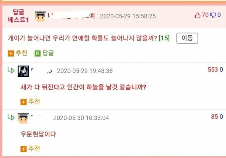 »ó´ë¹æ¿¡ ´ëÇÑ ¹è·Á´Â ³×ƼÄÏÀÇ ±âº»ÀÔ´Ï´Ù.°Ô½Ã¹°¿¡ »ó°ü¾ø´Â ´ä±ÛÀ̳ª ÃßõÀ¯µµ¼º ´ä±ÛÀ» ´ÞÁö ¸¶¼¼¿ä.