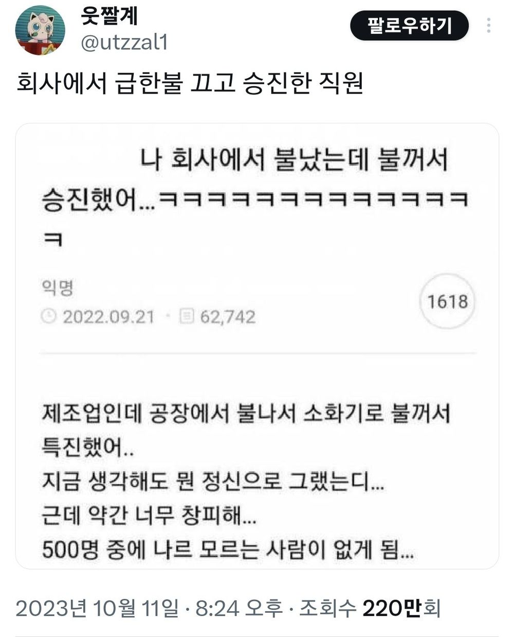 ´ÜÃà URL: https://humoruniv.com/pds1284075 URL º¹»ç |