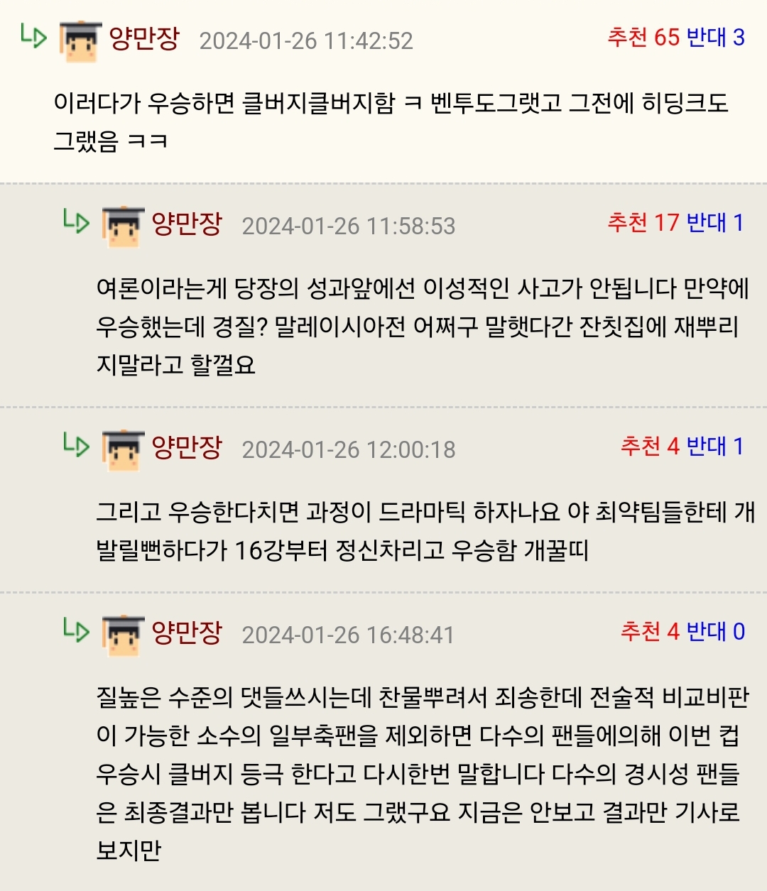 È÷µùÅ©°¡¾ø¾úÀ¸¸é ¹ÚÁö¼ºÀ̵µ ¾ø¾ùÀ»¼öÀÖÀ½. ¿Ö³Ä¸é ÃàÇù¿¡¼­ ¹Ì´Â ¼±¼öµéÀÌ µû·Î ÀÖ¾ú°Åµç. Áö±Ýµµ Á¦2,3ÀÇ ¹ÚÁö¼ºÀ̰¡ ³ª¿Íµµ ¹ß±¼À̾î·Á¿ò ¿Ö³Ä¸é Ŭ¸®½º¸¸Àº ÃàÇùÀÌ »Ì¾ÆÁØ ¸í´ÜÀ¸·Î ¶óÀξ÷Â¥´Ï±ñ. º¥¹öÁö´Â ±×·¡µµ ÀιüÀ̸¦ Ű¿ò. Èï¹ÎÀÌ´Â ¾Æ¹öÁö°¡. ¹ÎÀç´Â ½º½º·Î. °­ÀÎÀ̴ Ÿ°í³´°í. ¾ç±ÃÇùȸ°¡ ÃàÇùó·³ ÇÞÀ¸¸é ÁøÁï¿¡ ¼¼°è¼øÀ§±Ç ³»Áá´Ù. ¿ì¸®³ª¶ó´Â ÀÎÇÁ¶ó·Î ±¹´ë³ª¿À´Â°Ô¾Æ´Ï¶ó °Á Áö ´É·ÂÀ¸·Î ¤¸³ª°Ô ³ë·ÂÇØ¼­ ±×Áß¿¡¼­µµ ¸î¸í¸¸ ºûÀ»º¸´Â°ÅÀÓ. Áß±¹Ã³·³µ·À»½ñ°í ÀϺ»Ã³·³ ¿î¿µÇßÀ¸¸é ³úÇǼȵ¹·Á¼­ 11¸íÀÇ À̰­ÀÎÀ̶ٴ ÆÀµµ µÉ¼öÀÖ´Ù°í º»´Ù.