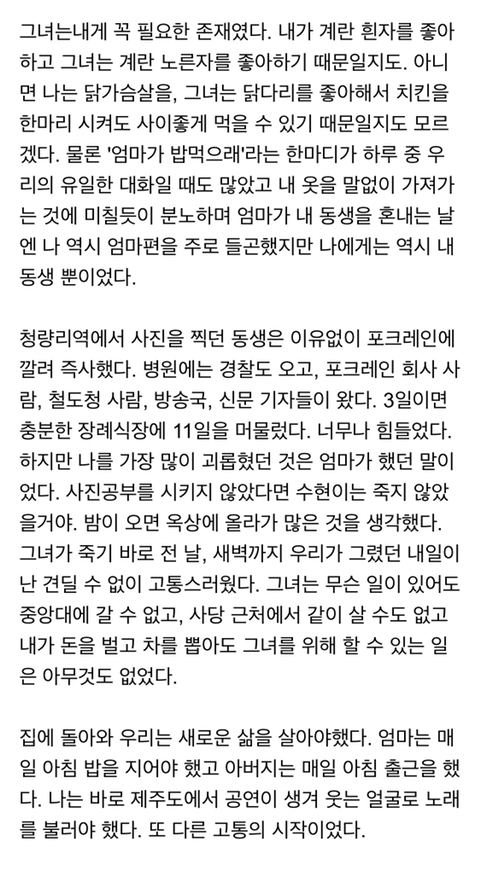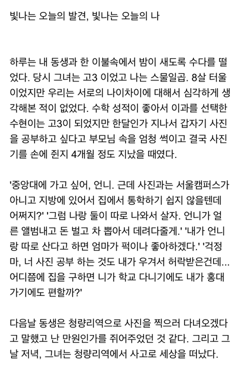 ùȸ»ç Á÷À嵿·á ´ëÇе¿±â°¡ ¼ú¸Ô´Ù °Á µÚ·Î³Ñ¿©Àú¼ ±Þ»ç ÇÏ°í ½Ã°£ Á¶±Ý Áö³ª¼ ´ëÇ¥±îÁö ÀÚ»ìÇϰí . Ä£ÇÑÇüµµ ÀÚ±â Â÷¿¡¼ ¿¬ÅºÇǰí Á×¾î¹ö¸®°í ±×¶§ ³ª´Â Ç㹫ÁÖÀÇ¿¡ ºüÁ®ÀÖ¾ú´Ù ¹ú¸é ¹¹ÇØ? ¾ðÁ¦Á×À»Áö ¸ð¸£´Â ÀλýÀε¥ ±×³É ³î°í ¾²ÀÚ ±Ùµ¥ ³ªÀ̰¡ µé¼ö·Ï Á¤¸» ¸¹Àº »ç¶÷ÀÌ Á×¾ú´Ù ÇöÀå¿¡¼ ÀÏÇϴµ¥ Àú±â ¿·¿¡ ÀÖ´ø ¾ÆÀú¾¾°¡ °©ÀÚ±â Á×°í ¿·µ¿³× ¹ÝÀåÀÌ ¸ñÀ» ¸Å°í Àß ´Ù´Ï´ø Á÷¿øµµ ¿ì¿ïÁõ¿¡ °í»ýÇÏ´Ù Á×´Â°É º¸°í ±×µéÀÇ Á×À½Àº Á×À½ÀÌ°í ³ª´Â »ì¾Æ°¡¾ßÇϴ±¸³ª ÇÏ°í ´À²»´Ù ½½ÇÁ°í ±«·Î¿öµµ ³ ¹äÀ»¸Ô°í ÀáÀ» ÀÚ°í »ì¾Æ°¡¾ßµÇ´Â »ç¶÷ÀÌ´Ï±î »ç¶÷¸¶´Ù ´Ù¸£°ÚÁö¸¸ ³Ê¹« Ç㹫ÁÖÀÇ¿¡ ºüÁú Çʿ䰡 Àִ°¡.. ¾î¶µç ³ª´Â »ì¾Æ¾ß µÇ´Â°ÍÀ»