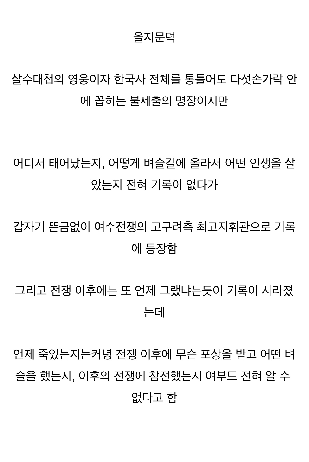 ´Ù¸¸ À»Áö¹®´öÀÌ ±¹°¡ÀÇ ´ë¿µ¿õÀ̶ó »ýÀü¿¡´Â óÇü±îÁö´Â ¾Æ´Ï¾ú°í À»Áö¹®´ö »çÈÄ ½ÇÁúÀû ¼÷ûÀÌ ÀÌ·ç¾îÁö¸é¼ ´ë°¡ ²÷°åÀ»°Å¶ó°íµµ ÇÏ´õ¶ó