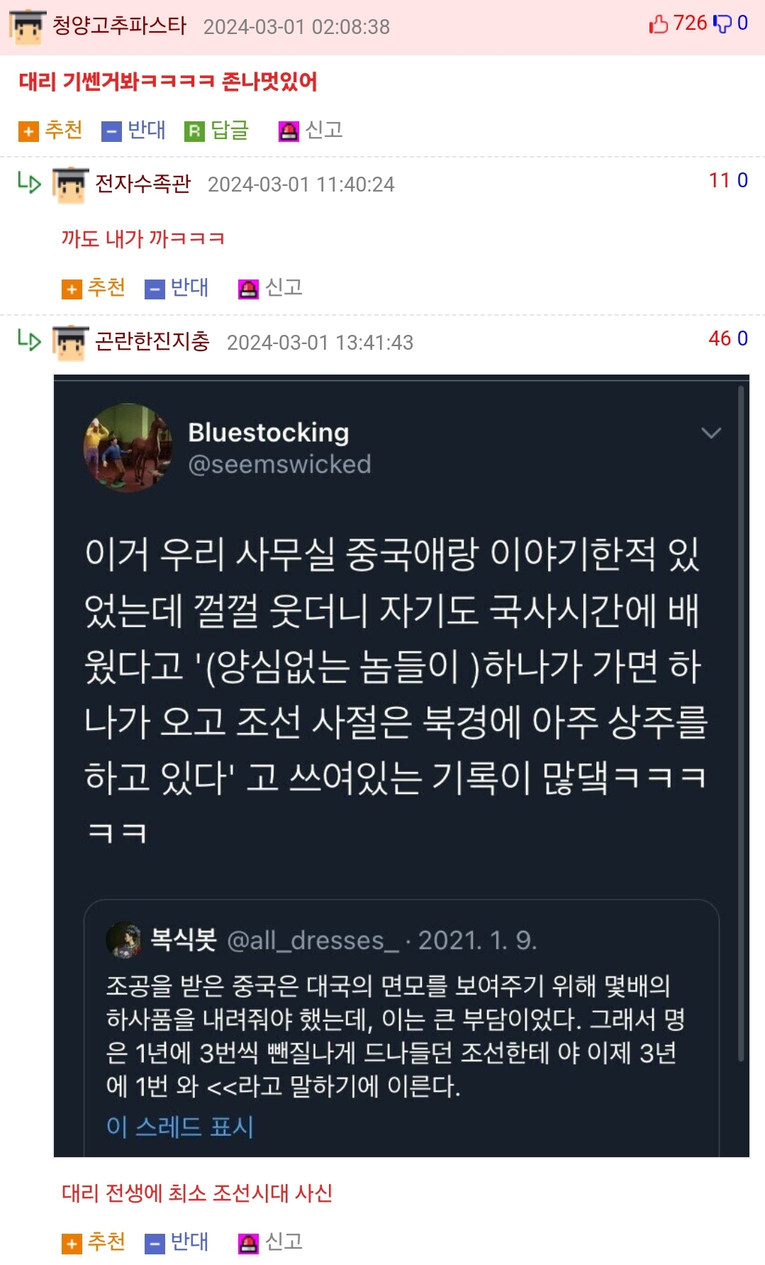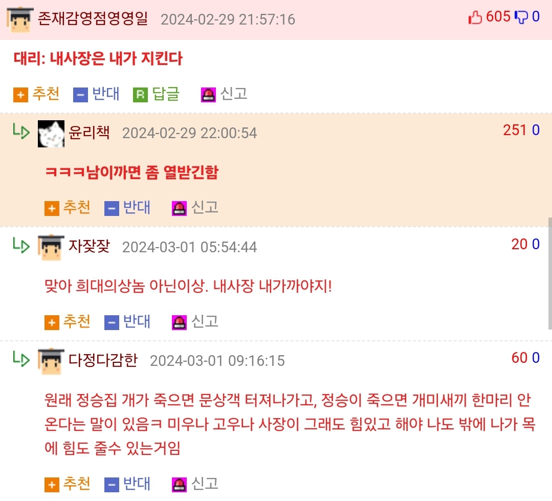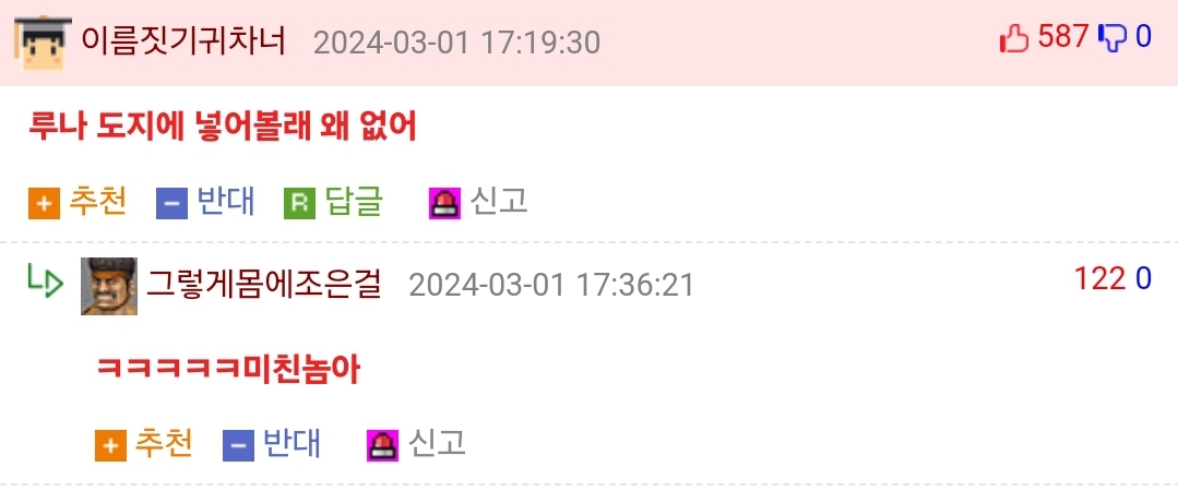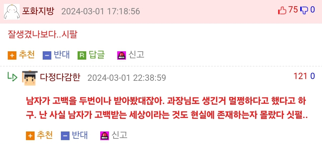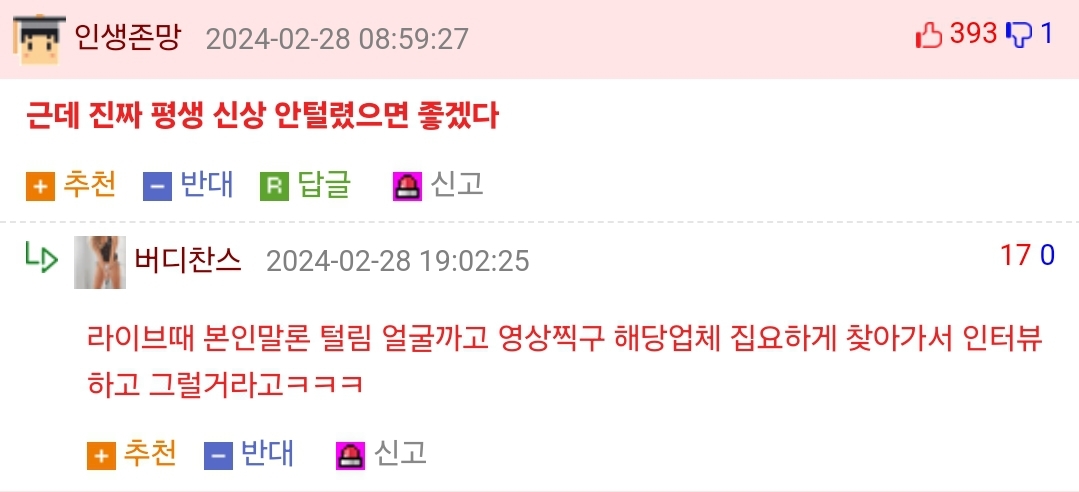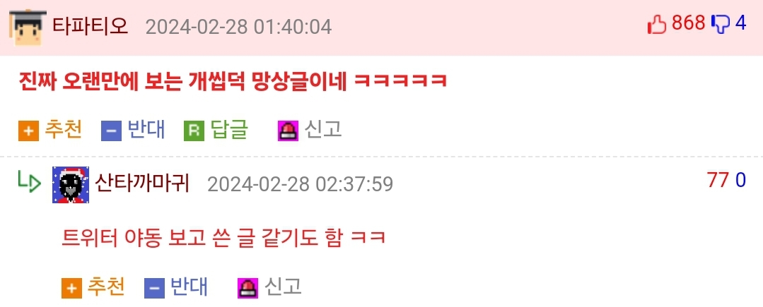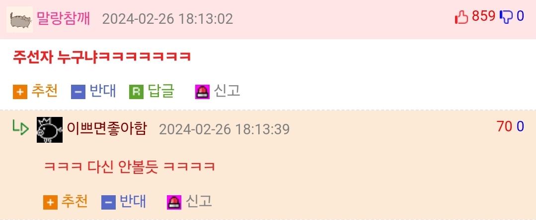 20 Ãßõ Ãßõ ¹Ý´ë ¹Ý´ë ½Å°í ½Å°í ´ä±Û ´ä±Û 2024-03-03 14:09:09
