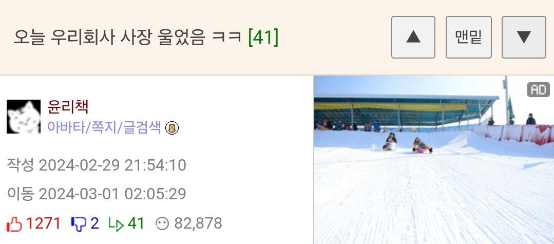 °Ô½Ã¹°ÀÌ 43ºÐ ¸¸¿¡ ¿ô±äÀÚ·á °Ô½ÃÆÇÀ¸·Î À̵¿µÇ¾ú½À´Ï´Ù!
