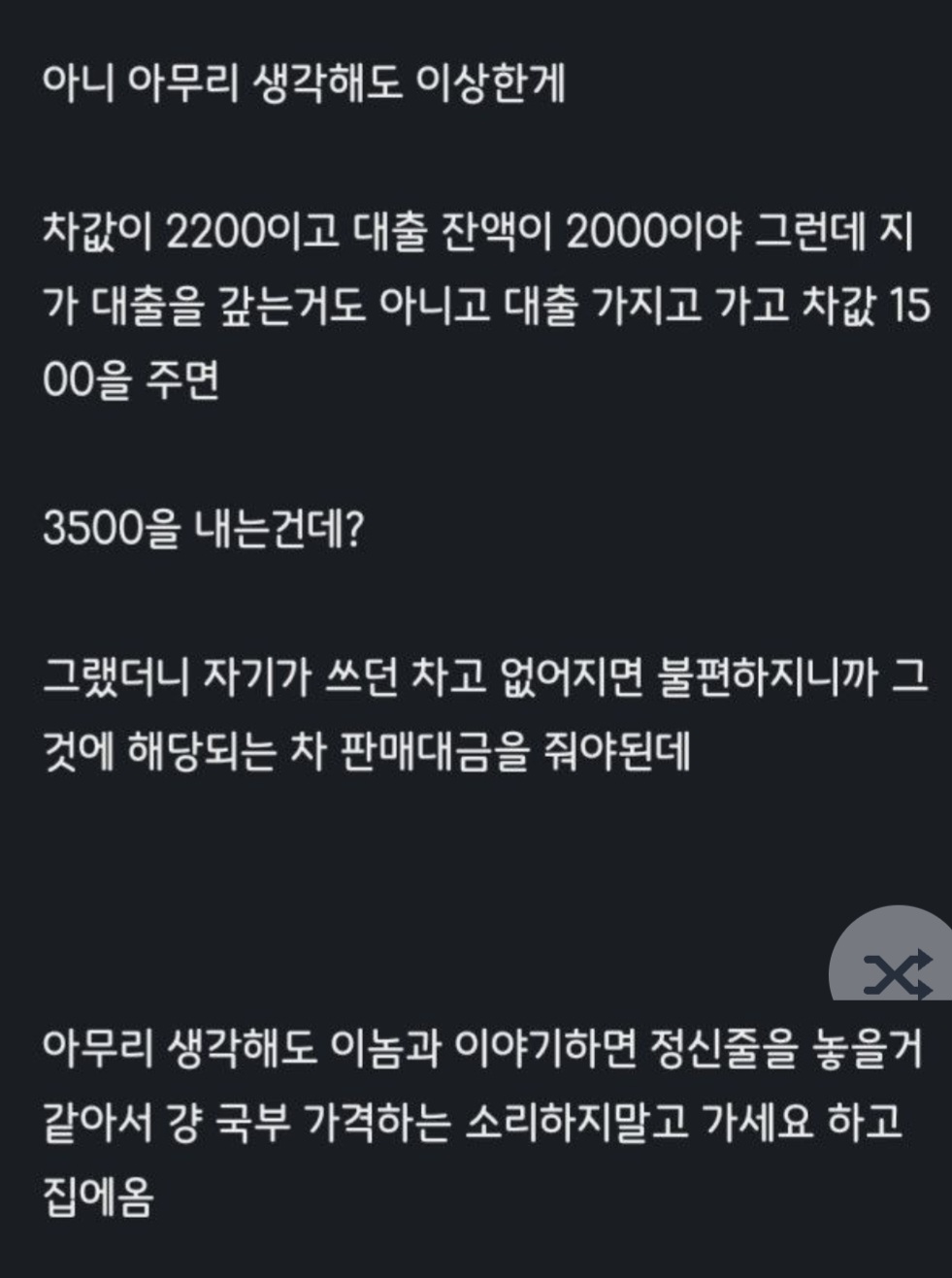 4200 Â¥¸® Â÷°¡ ¾Æ´Ï¶ó 2200Â¥¸® ÆÈ¸é¼ 3700¹Þ´Â´Ù´Â ¼Ò¸®Àε¥ »ç±â²ÛÀ̳×
