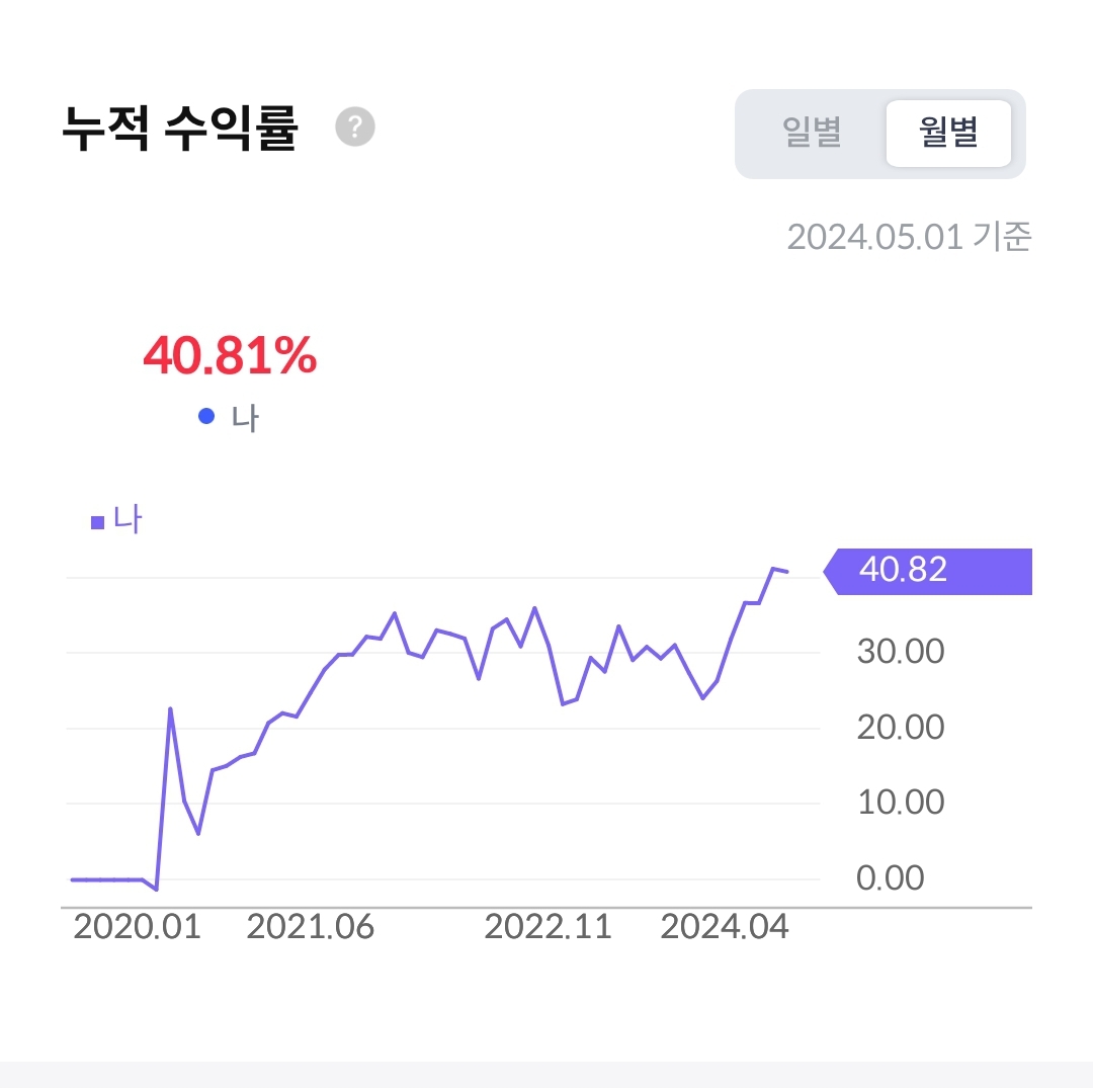 20³âµµºÎÅÍ ÅõÀÚ½ÃÀÛÇߴµ¥.. ±æ°Ô º¸´Ï±î ³ª»ÚÁö ¾ÊÀ½.. ¿¬ ¸ñÇ¥ 7% ¼öÀÍ·ü Àâ°í ÅõÀÚÁßÀÓ.. È®½ÇÈ÷ »ç°íÆÄ´Â°É ÁÙÀÌ´Ï±î ¼öÀÍ·üÀÌ ¿Ã¶ó°¨..