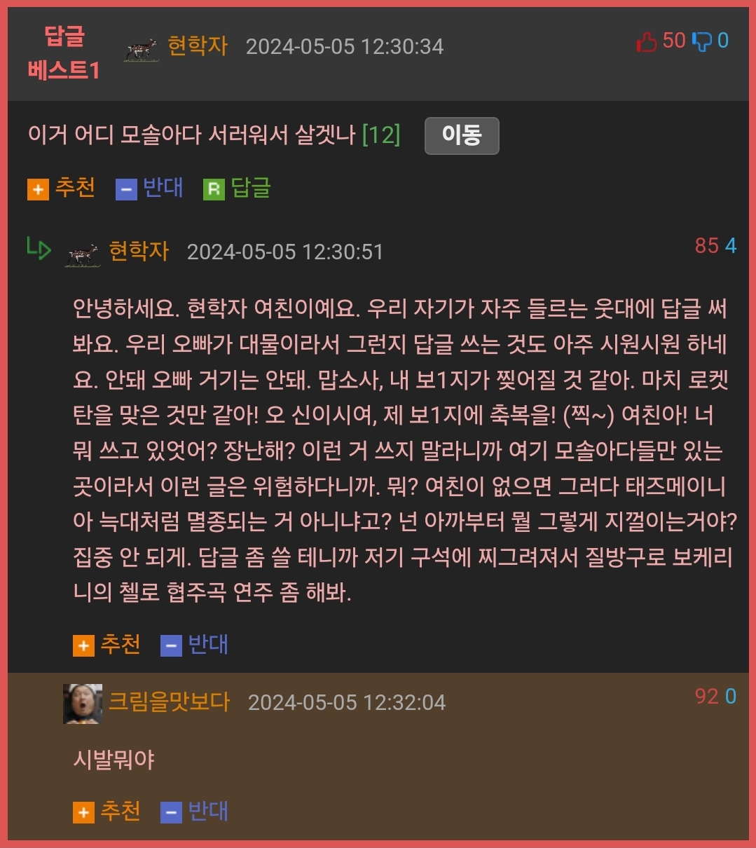 ¨è ³»°¡ ¿Ç´Ù°í ÇÏ´õ¶óµµ Á¶¿ëÈ÷ ½Å°í¸¸ ÇÏ½Ã°í »ó´ë¹æÀ» ºñ³­ÇÏ´Â ±ÛÀ» ¾²Áö´Â ¸¶¼¼¿ä. À̰÷Àº ¿Ç°í ±×¸§À» °¡¸®´Â °÷ÀÌ ¾Æ´Õ´Ï´Ù.