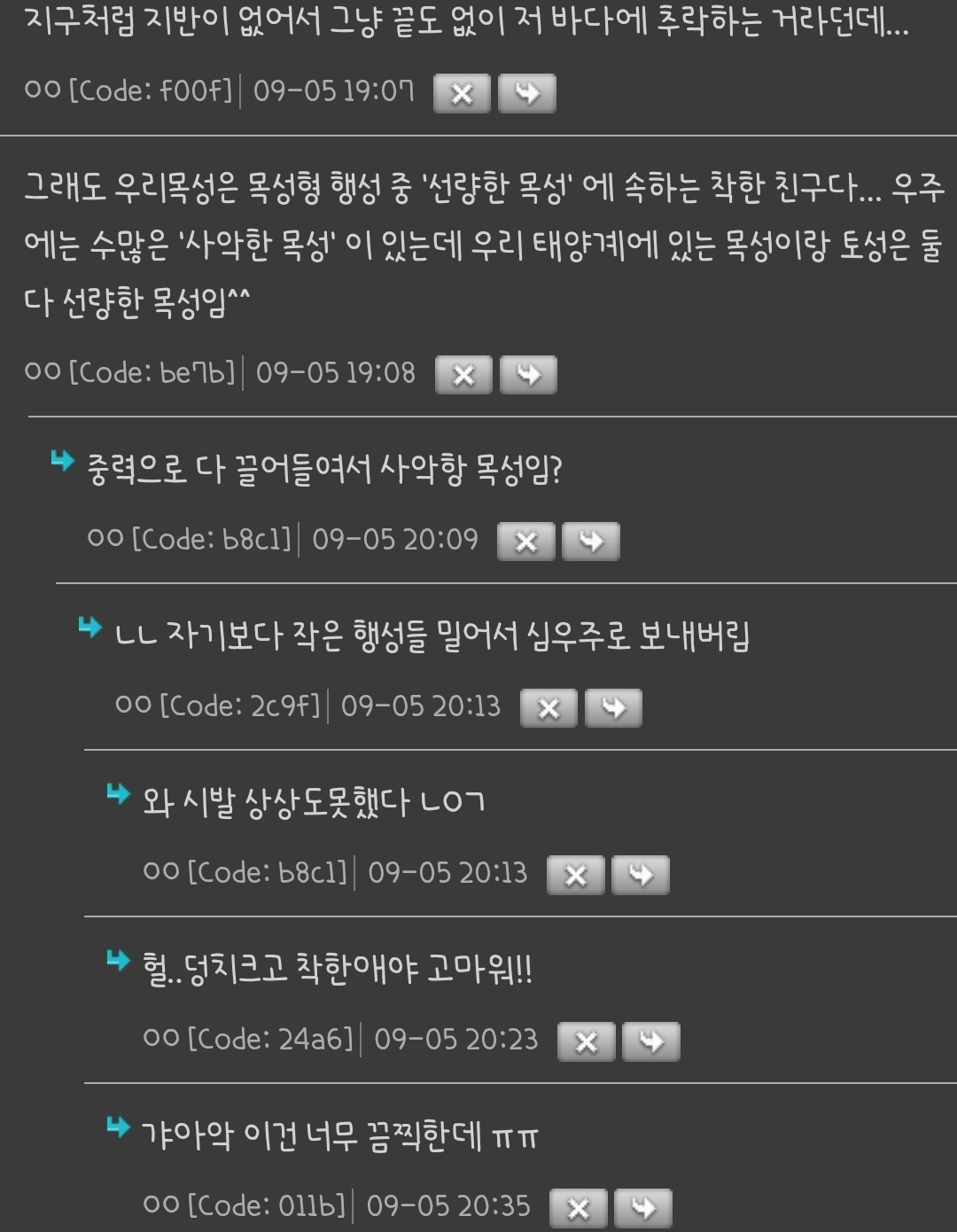 »ó´ë¹æ¿¡ ´ëÇÑ ¹è·Á´Â ³×ƼÄÏÀÇ ±âº»ÀÔ´Ï´Ù.°Ô½Ã¹°¿¡ »ó°ü¾ø´Â ´ä±ÛÀ̳ª ÃßõÀ¯µµ¼º ´ä±ÛÀ» ´ÞÁö ¸¶¼¼¿ä.